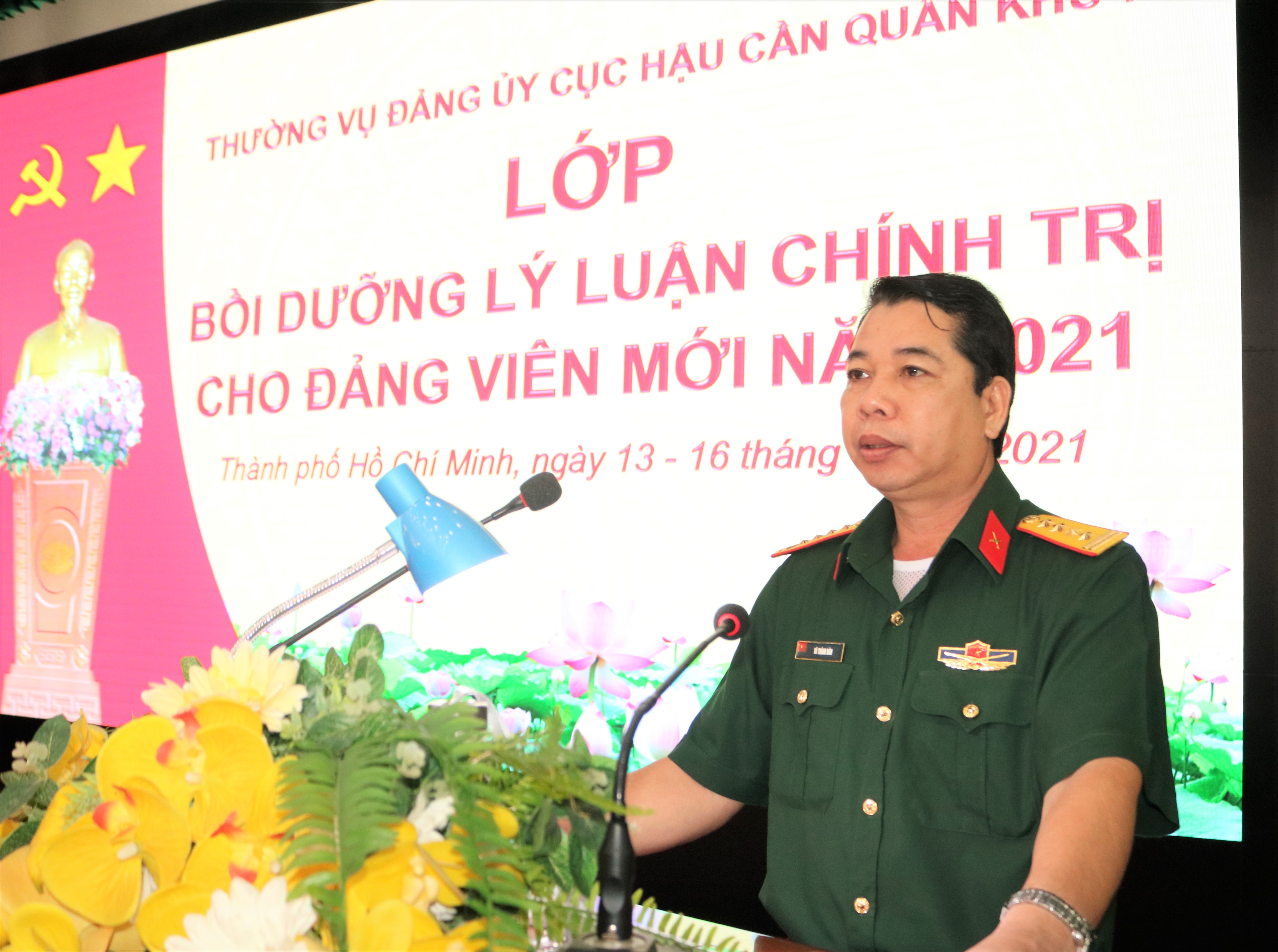 Đại tá Võ Thành Đàn, Chủ nhiệm Chính trị Cục Hậu cần yêu cầu từng đồng chí đảng viên mới cần xây dựng kế hoạch phấn đấu, rèn luyện, thực hiện tốt nội quy, quy chế học tập, đảm bảo yêu cầu theo nội dung và chương trình học; cố gắng khắc phục khó khăn đảm bảo thời gian lên lớp, có thái độ học tập nghiêm túc, cầu thị, góp phần xây dựng tổ chức đảng trong sạch vững mạnh, cơ quan, đơn vị vững mạnh toàn diện.