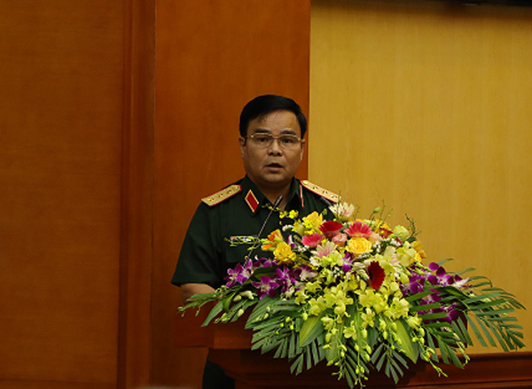 Thượng tướng Lê Chiêm phát biểu tại Hội nghị trực tuyến Tổng kết thực hiện Quyết định số 49, ngày 25/9. (ảnh: Mạnh Hùng)