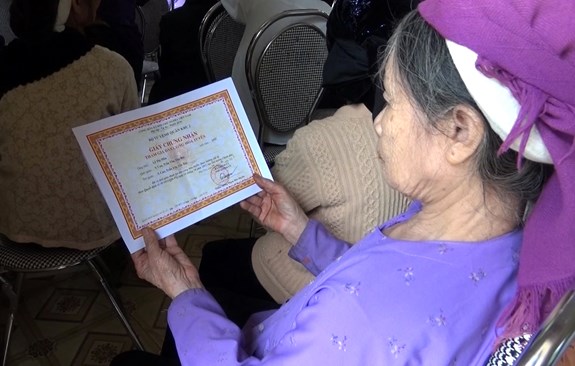 Bà Lê Thị Mẫn (xã Y Can, huyện Trấn Yên, tỉnh Yên Bái) vui mừng được cấp Giấy chứng nhận tham gia DCHT. (ảnh: QĐND)