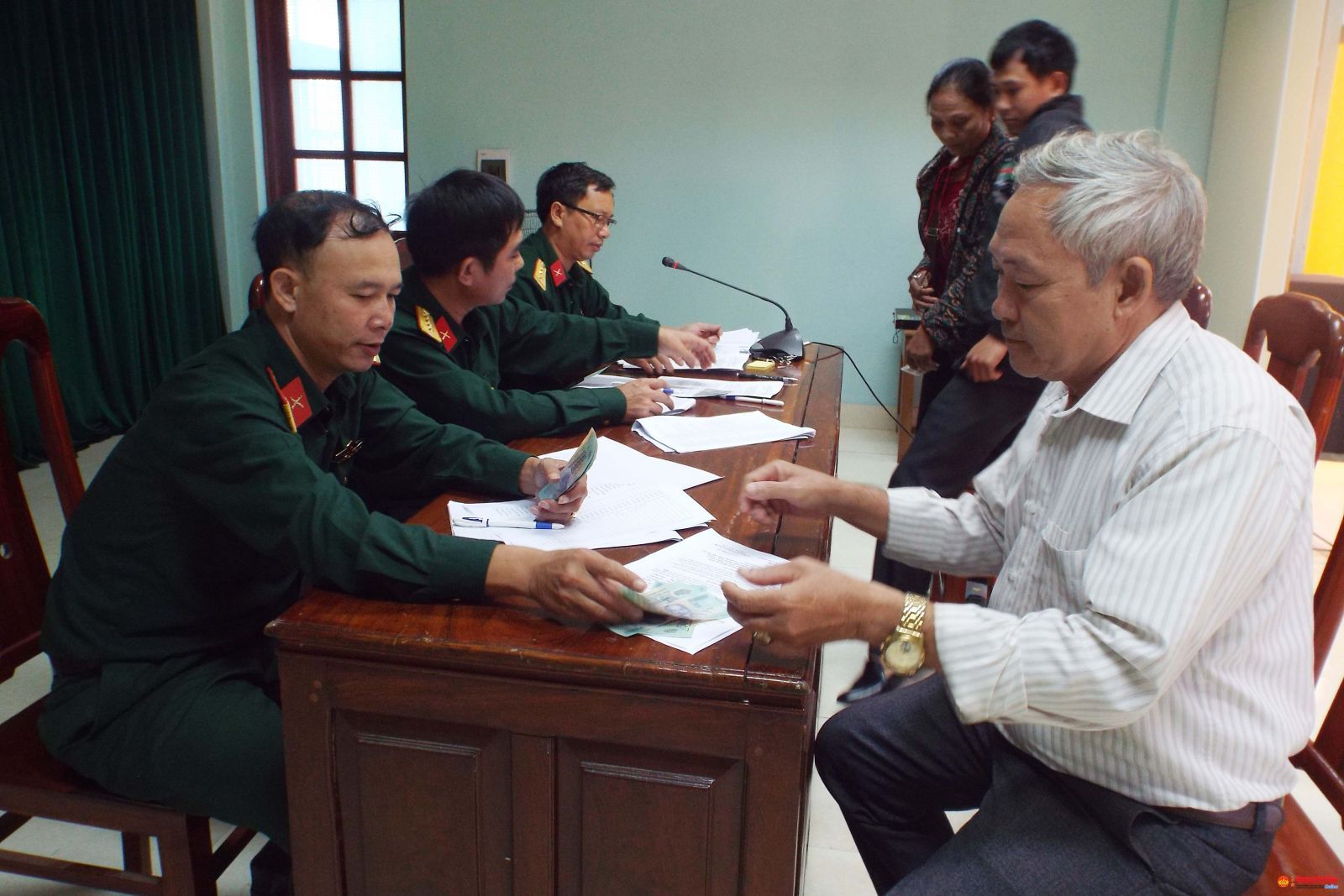 Ban Chỉ huy Quân sự huyện Tuyên Hóa (tỉnh Quảng Bình) chi trả chế độ cho các đối tượng chính sách theo Quyết định 49. (ảnh: Báo Quân khu 4)