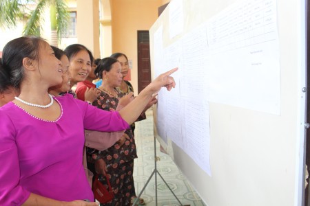 Nhân dân xã Tử Du (huyện Lập Thạch, tỉnh Vĩnh Phúc) theo dõi danh sách đối tượng tham gia DCHT được niêm yết công khai. (Báo Quân khu 2)