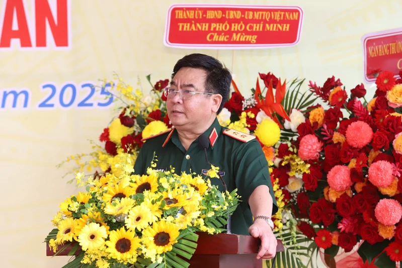 (QK7 Online) - Sáng 22/10, Bộ Tư lệnh Thành phố Hồ Chí Minh tổ chức khánh thành công trình thể dục thể thao ngoài trời tại Giáo xứ Thanh Phong, xã Phú Mỹ, Thành phố Hồ Chí Minh. Đại tá Thái Thành Đức, Phó Chủ nhiệm Chính trị Quân khu đến dự.