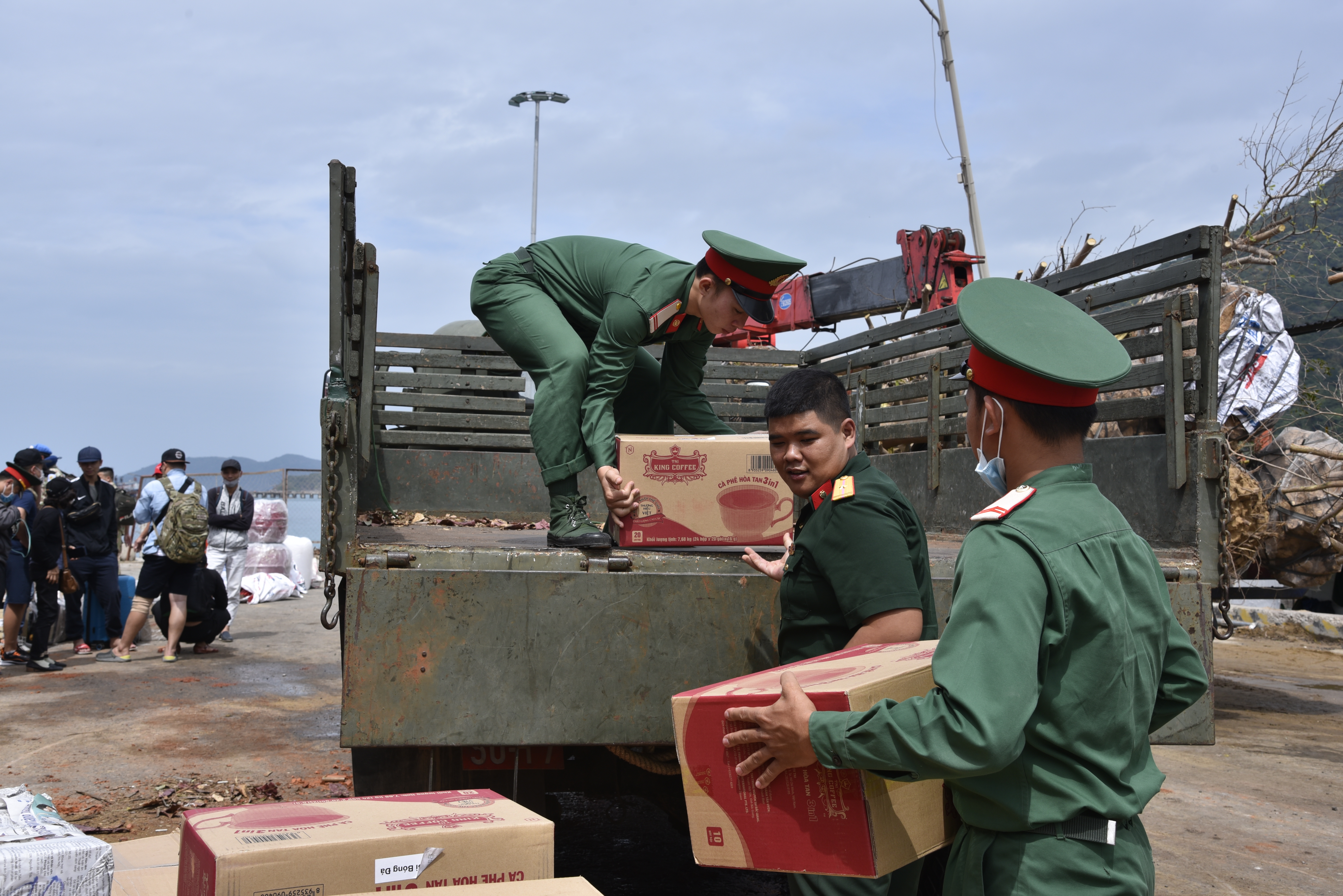Hàng hóa từ đất liền chuyển ra được bộ đội chuyển về các đơn vị chuẩn bị đón Tết.