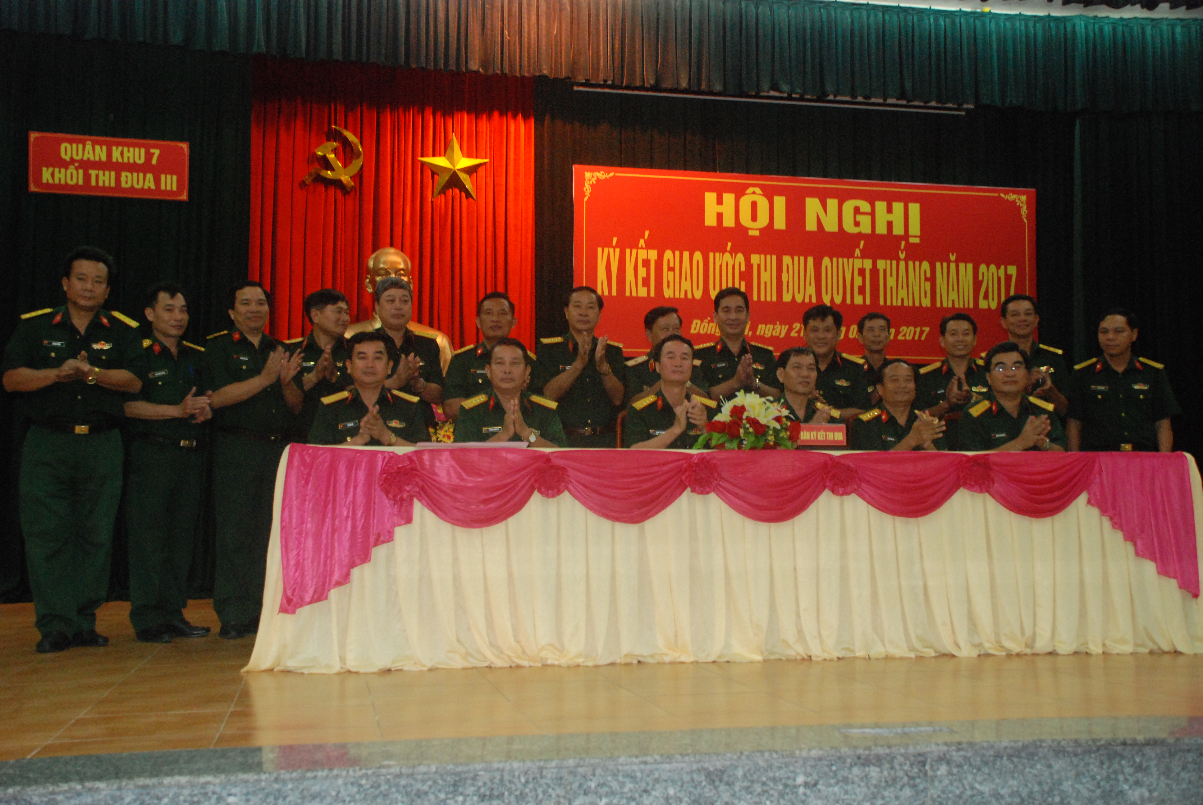 (QK7 Online) - Ngày 21 tháng 2 năm 2017, tại Lữ đoàn 25, khối thi đua 3 gồm 5 lữ đoàn binh chủng và Trường bắn Quốc gia Khu vực III tổ chức hội nghị ký kết giao ước thi đua quyết thắng năm 2017. Thiếu tướng Nguyễn Văn Hưng, Phó Chủ nhiệm Chính trị Quân khu và Thủ trưởng các cơ quan Quân khu đến dự.