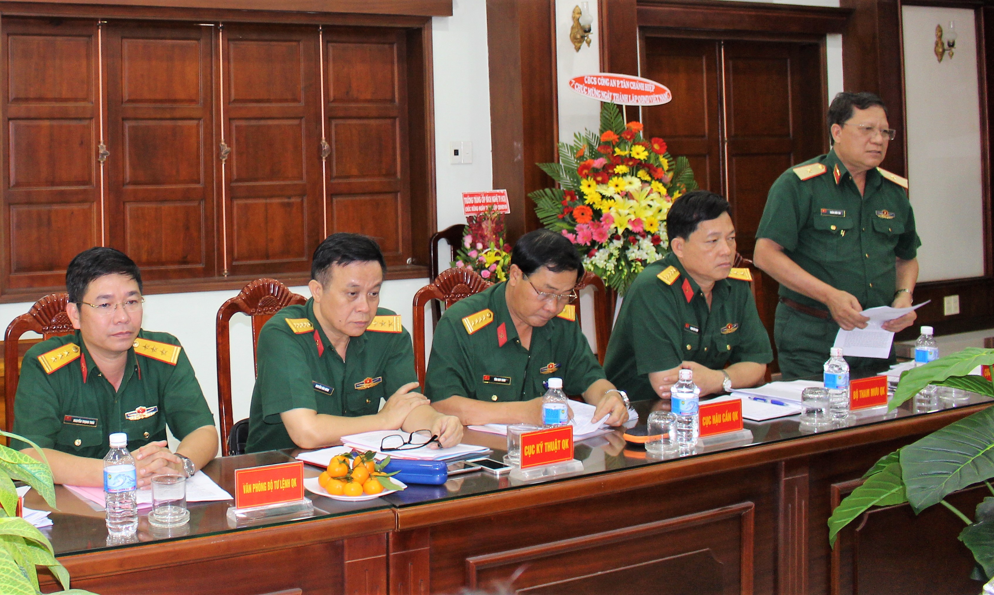 Thiếu tướng Trần Hữu Tài - Phó Chủ nhiệm Chính trị Quân khu đóng góp ý kiến cho công tác thi đua Khối các Nhà trường