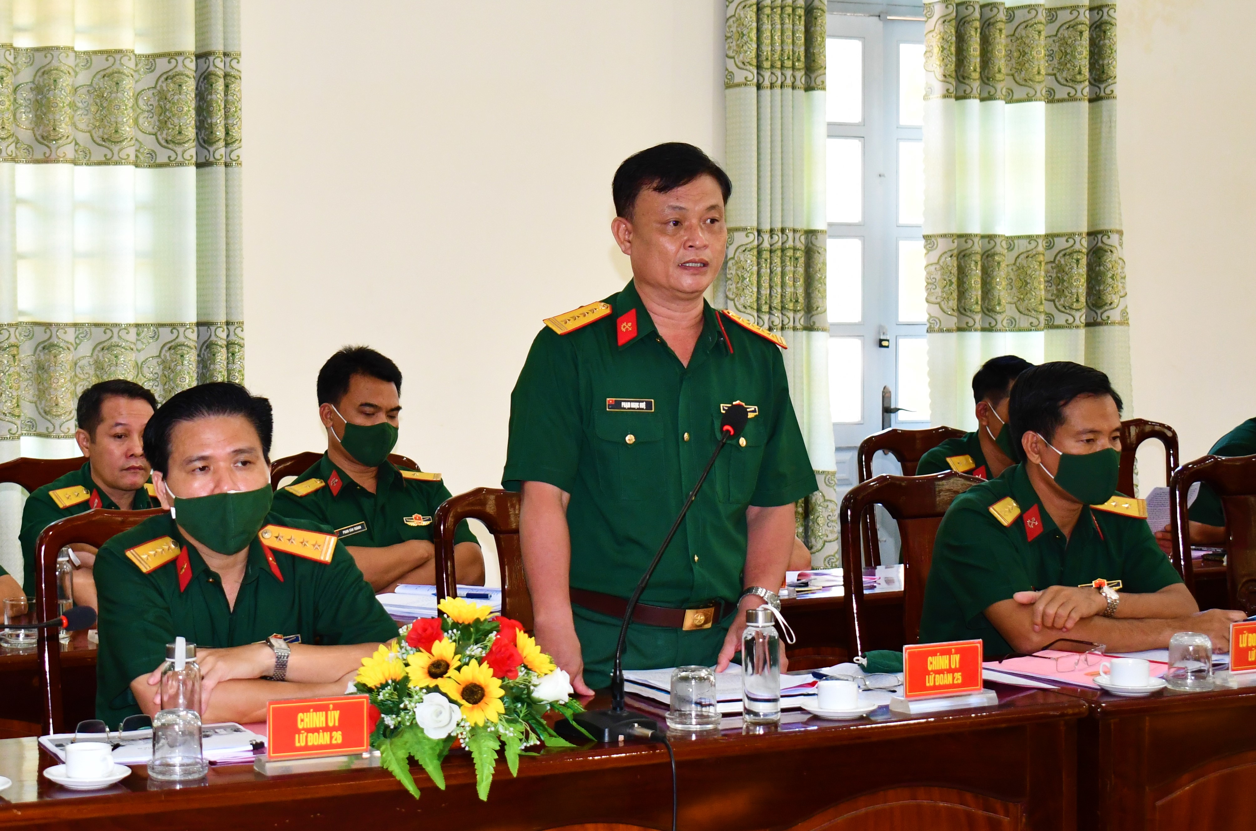 Đại tá Phạm Ngọc Huệ, Chính ủy Lữ đoàn 25 phát biểu tham luận tại hội nghị.