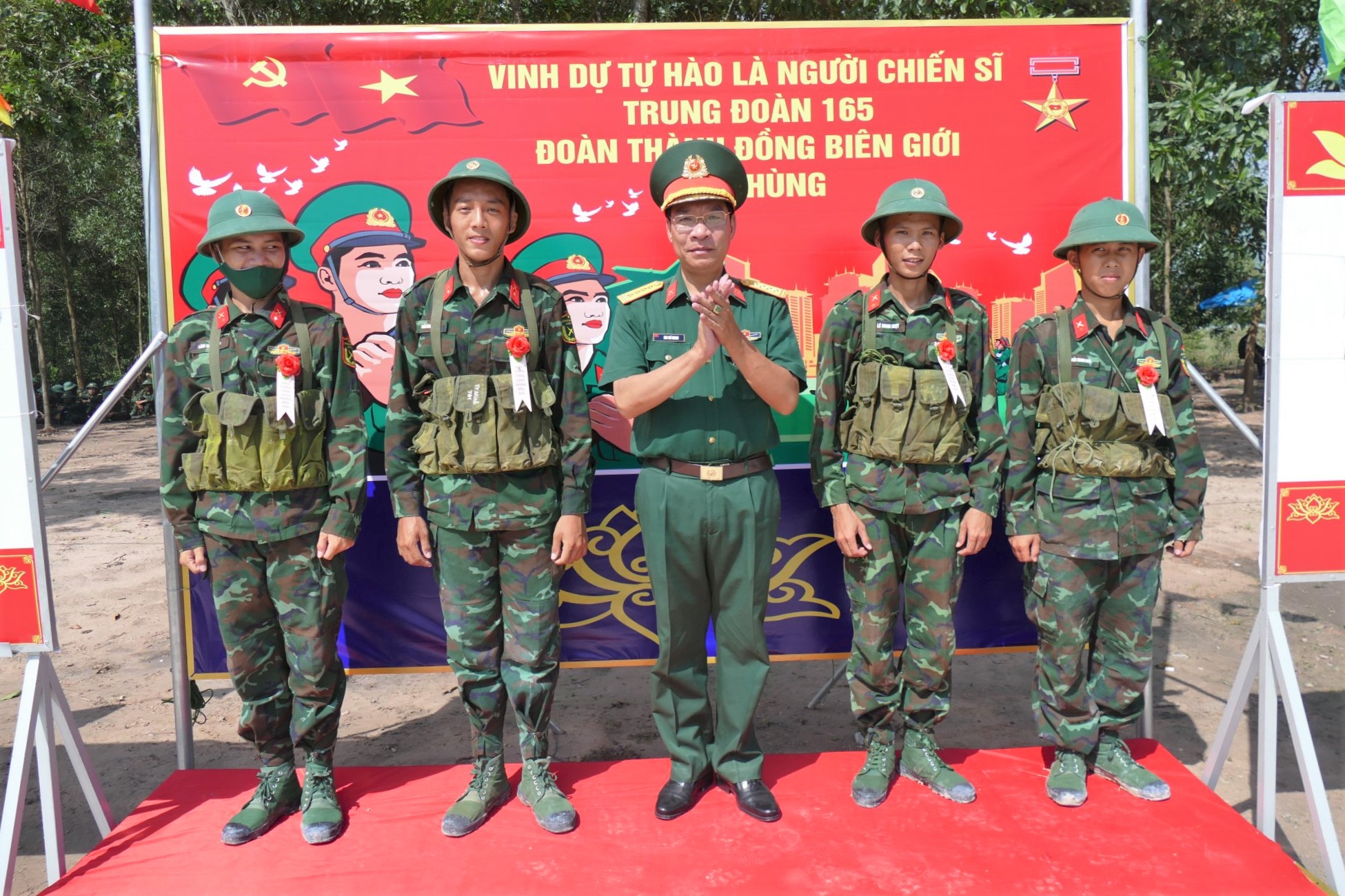 Đại tá Mai Chí Khanh, Phó Sư đoàn trưởng, Tham mưu trưởng Sư đoàn 7 tặng hoa chiến sĩ mới bắn giỏi năm 2022.