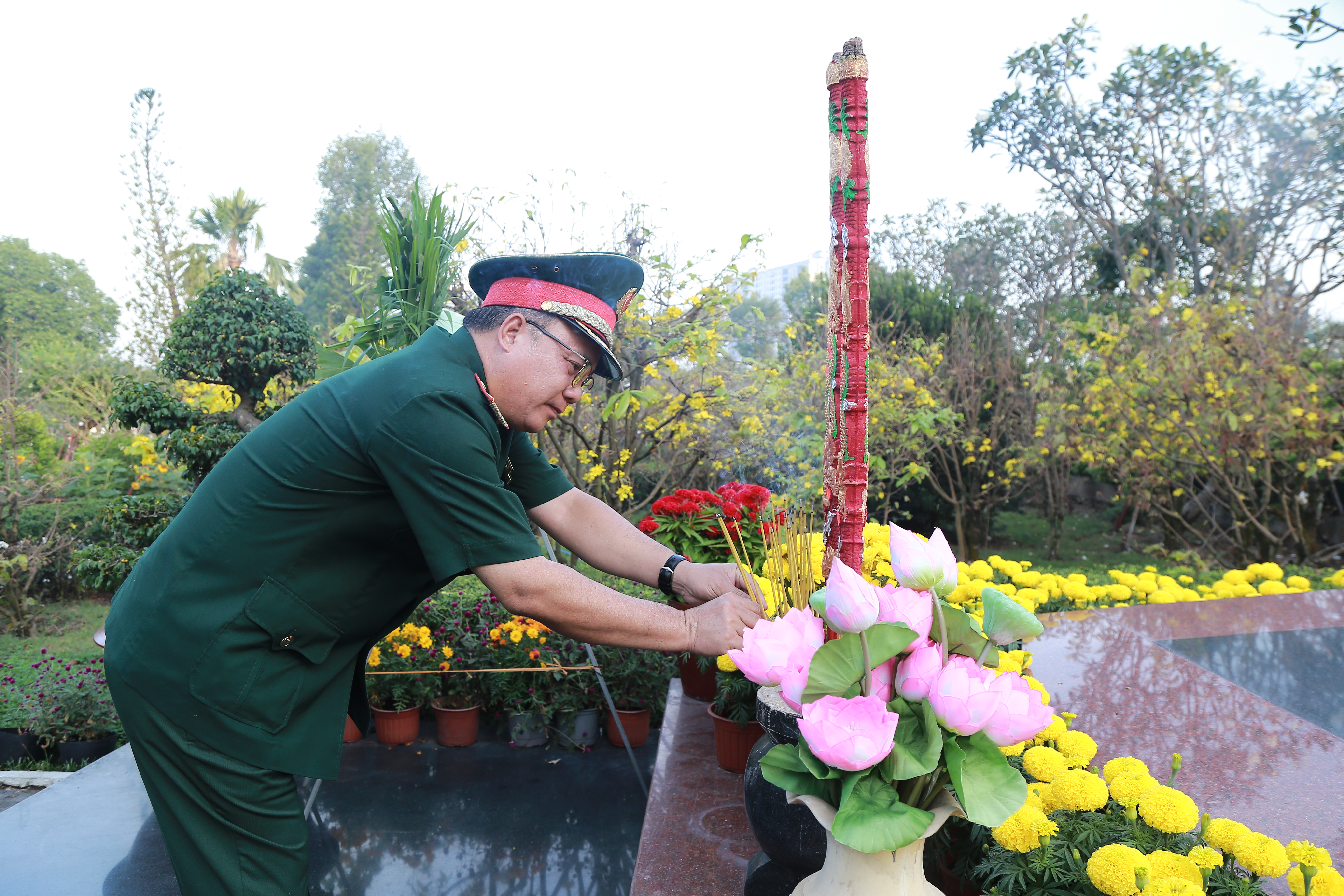 Thiếu tướng Du Trường Giang, Phó Tư lệnh Quân khu 7 thắp hương lên các phần mộ liệt sĩ.