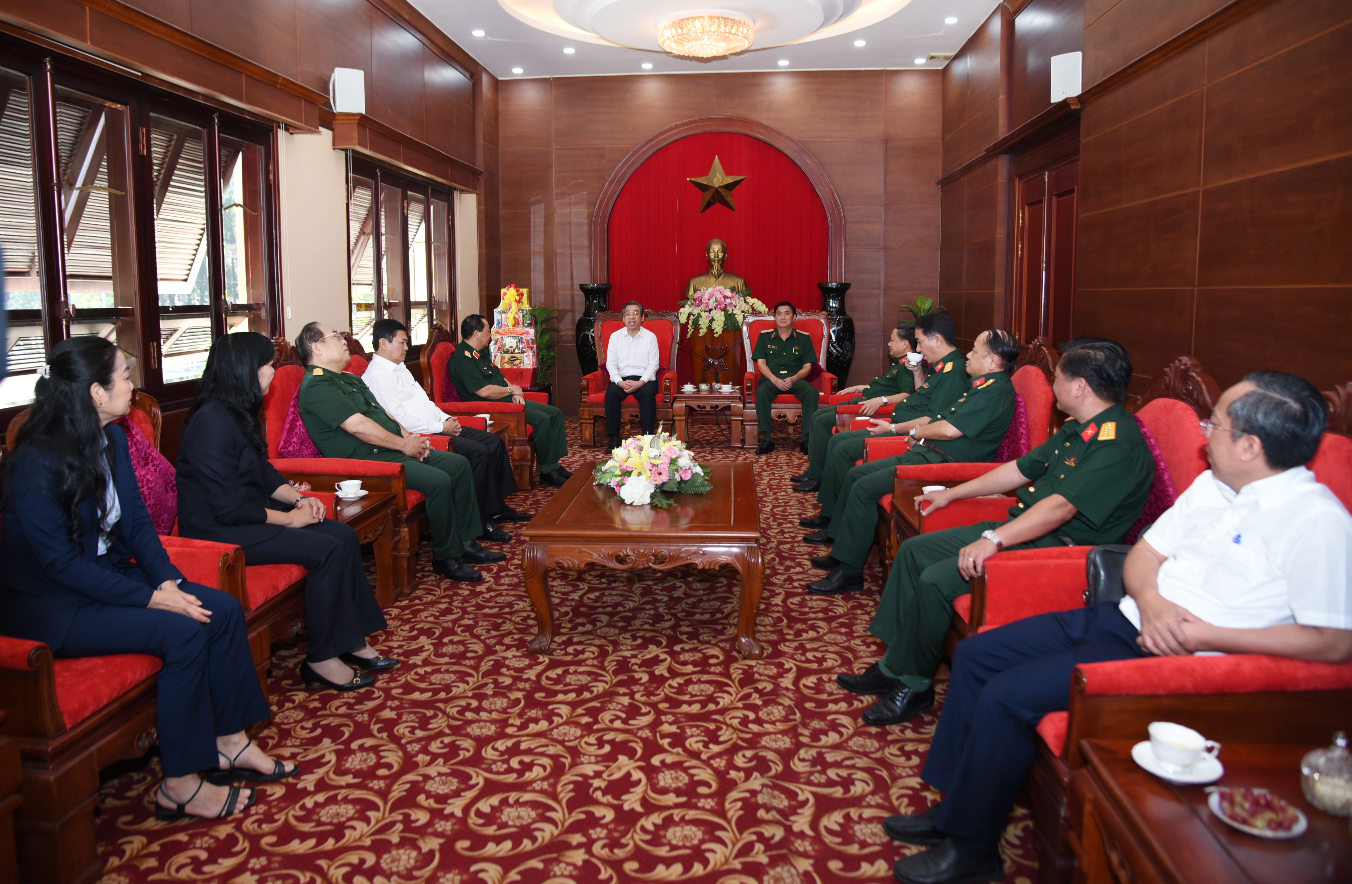 Thiếu tướng Võ Văn Thi, Phó Tư lệnh Quân khu chủ trì đón, tiếp đoàn đại biểu Thành phố Hồ Chí Minh đế chúc Tết Bộ Tư lệnh Quân khu 7.