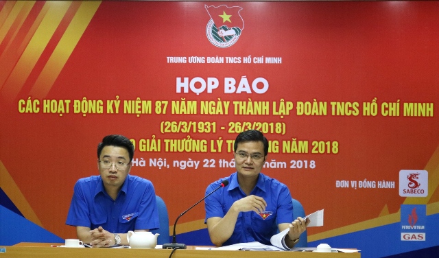 Tại buổi họp báo diễn ra ngày 22/3 tại Hà Nội, Bí thư Trung ương Đoàn Bùi Quang Huy cho biết, chào mừng 87 năm thành lập Đoàn TNCS Hồ Chí Minh (26/3/1931 – 26/3/2018), Trung ương Đoàn tổ chức kỷ niệm, tuyên dương cán bộ Đoàn xuất sắc toàn quốc và trao giải thưởng Lý Tự Trọng năm 2018 cho 87 cán bộ Đoàn và đoàn viên xuất sắc toàn quốc.
