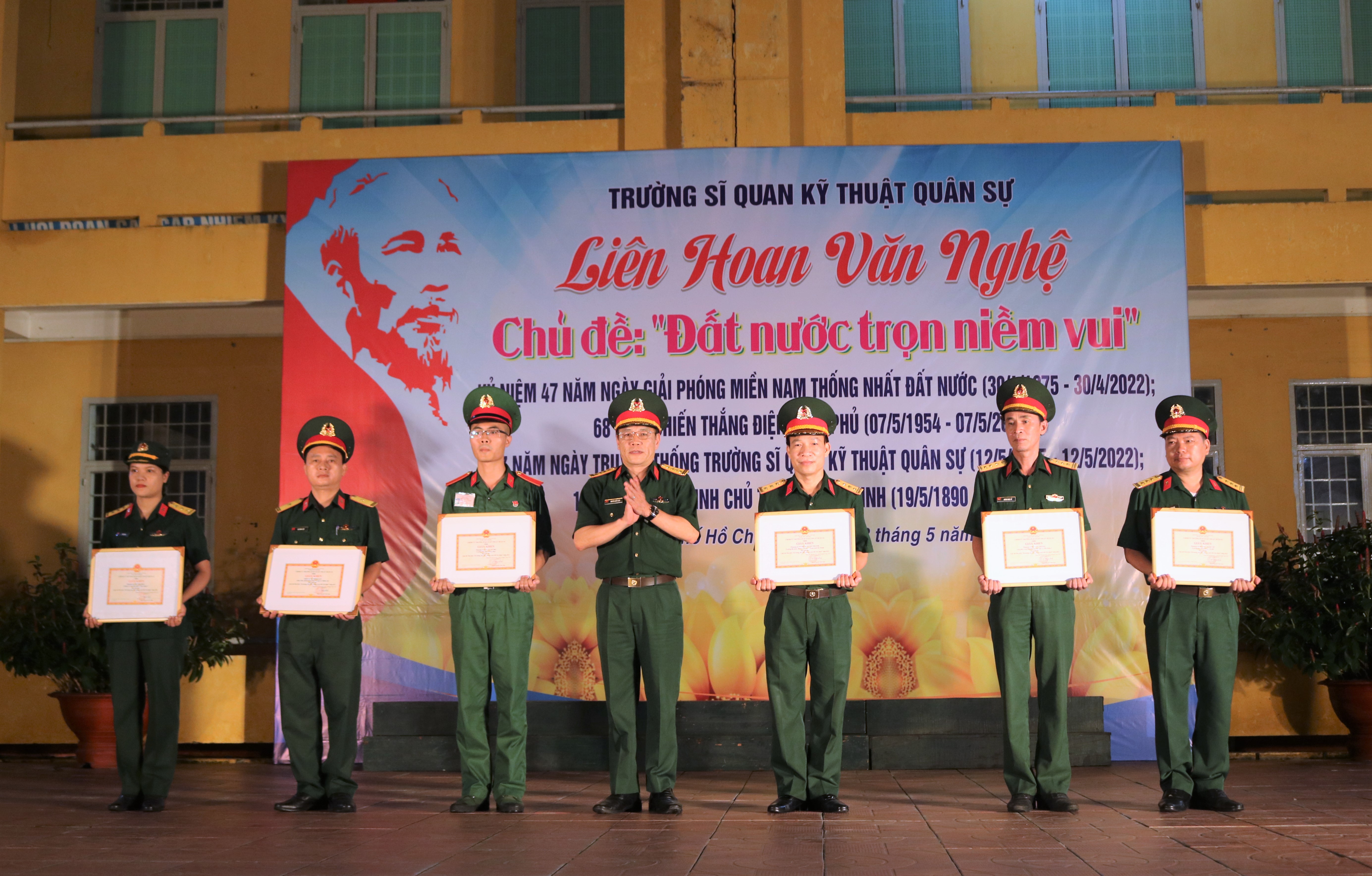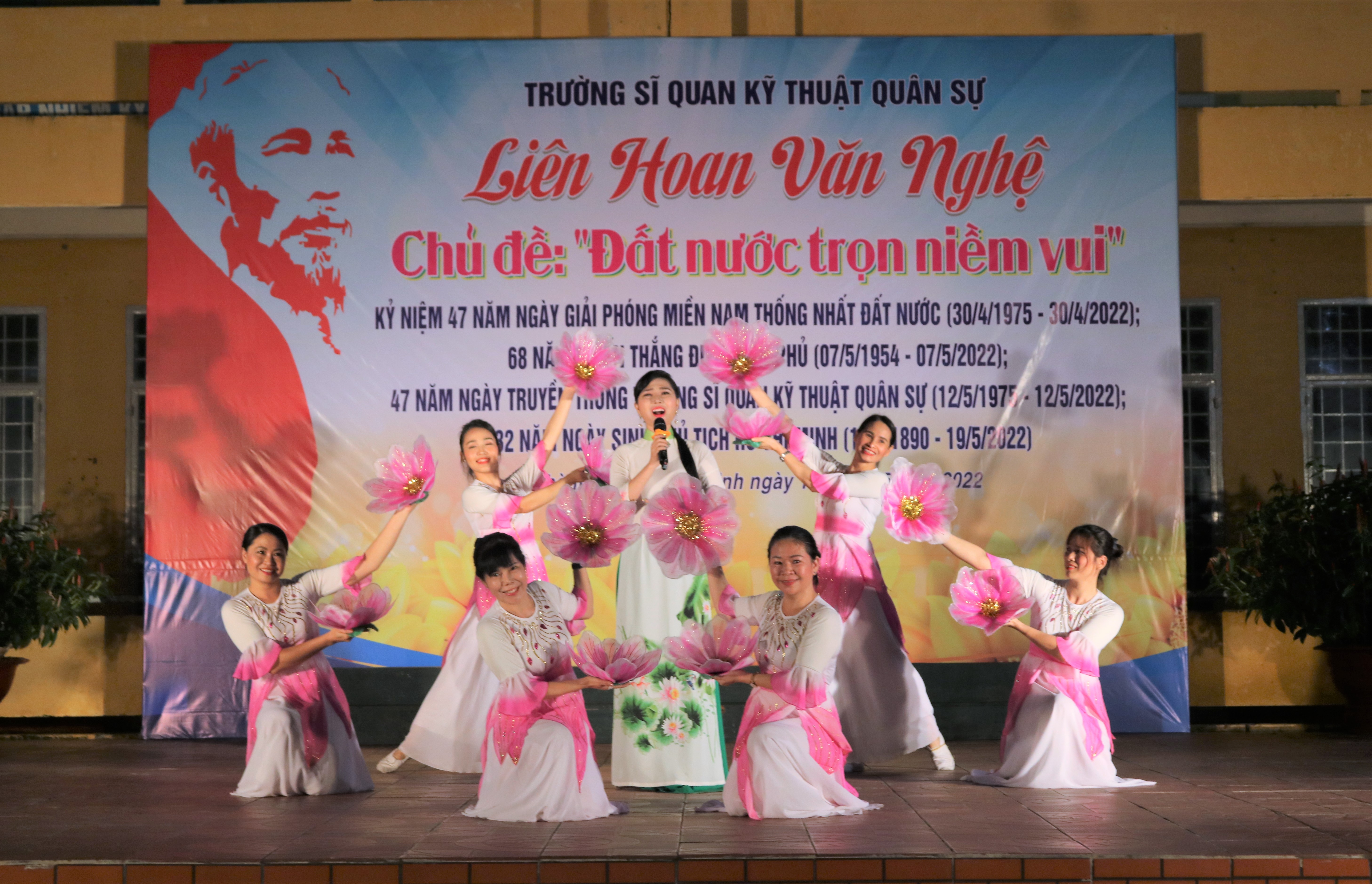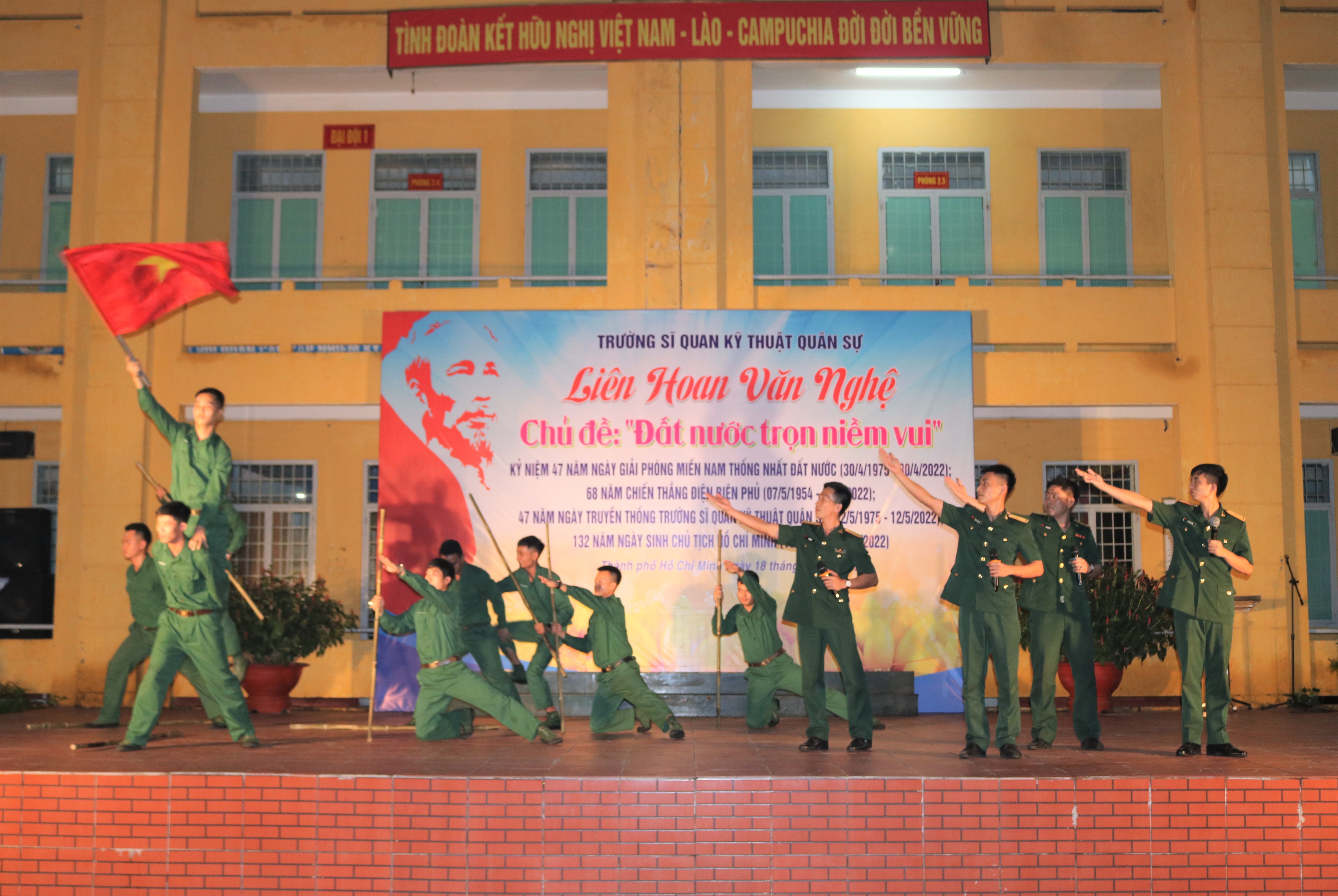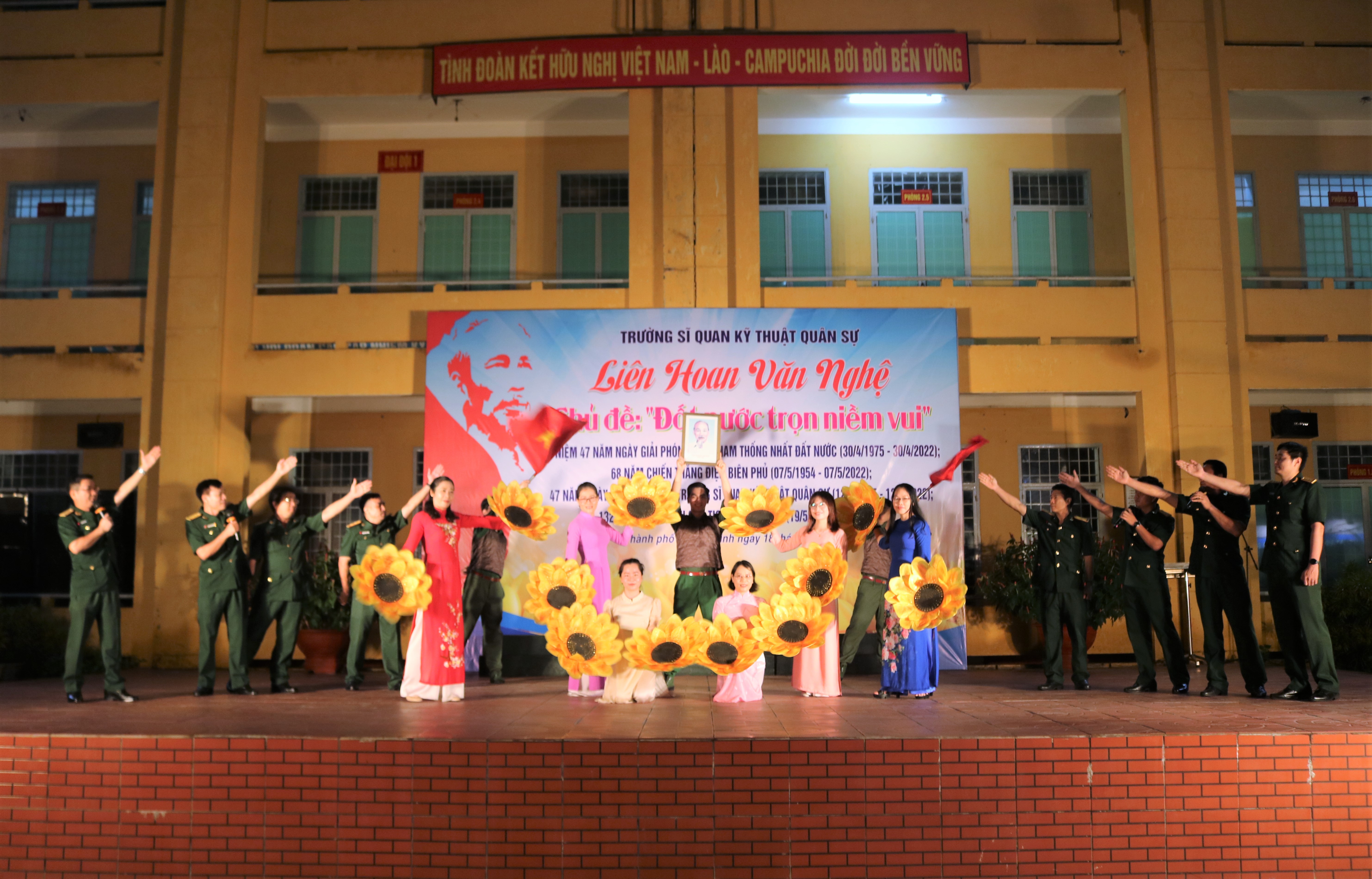 (QK7 Online) – Tối 18-5, Trường Sĩ quan Kỹ thuật Quân sự tổ chức liên hoan văn nghệ với chủ đề: “Đất nước trọn niềm vui” nhân kỷ niệm 47 năm ngày giải phóng miền Nam thống nhất đất nước (30/4/1975-30/4/2022); 47 năm ngày truyền thống nhà trường (12/5/1975-12/5/2022); 132 năm ngày sinh nhật Bác (19/5/1890-19/5/2022). Dự có Đại tá Nguyễn Chiến Hạm, Bí thư Đảng ủy, Chính ủy nhà trường.