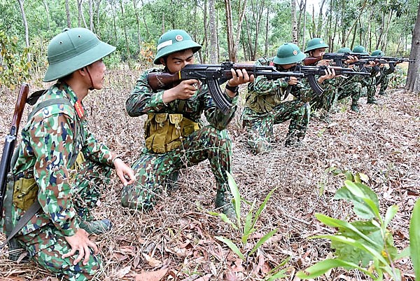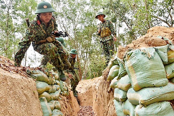 Chiến sĩ mới tập luyện chiến đấu dưới hào.