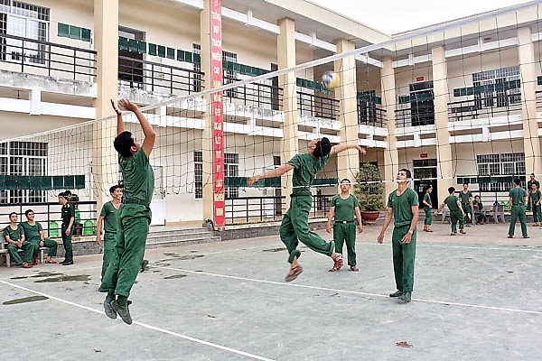 Chiến sĩ vui chơi thể thao sau một ngày huấn luyện.