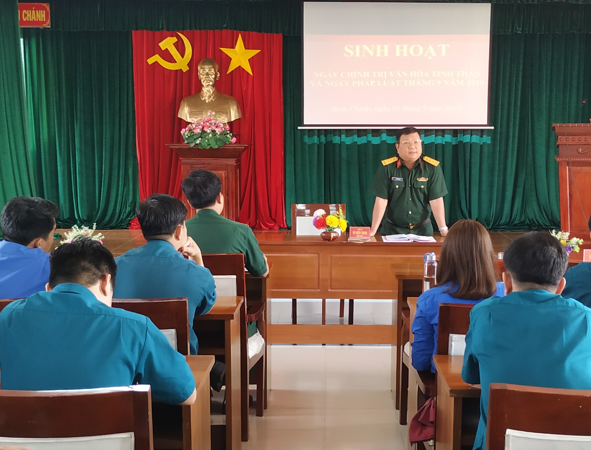 Buổi sinh hoạt đã tuyên truyền sâu rộng cho cán bộ, chiến sĩ LLVT huyện về ý nghĩa lịch sử 74 năm Ngày truyền thống LLVT Thành phố Hồ Chí Minh (4/9/1945 – 4/9/2019); khái quát những vấn đề cơ bản Luật Cảnh sát biển Việt Nam; quán triệt qui định của Bộ Tư lệnh thành phố về lễ tiết tác phong quân nhân, dân quân tự vệ trong thực hiện nhiệm vụ sẵn sàng chiến đấu, trách nhiệm của cán bộ, chiến sĩ tham gia đấu tranh bảo vệ nền tảng tư tưởng của Đảng, đấu tranh phản bác với các thông tin sai trái, xấu độc trên mạng xã hội.
