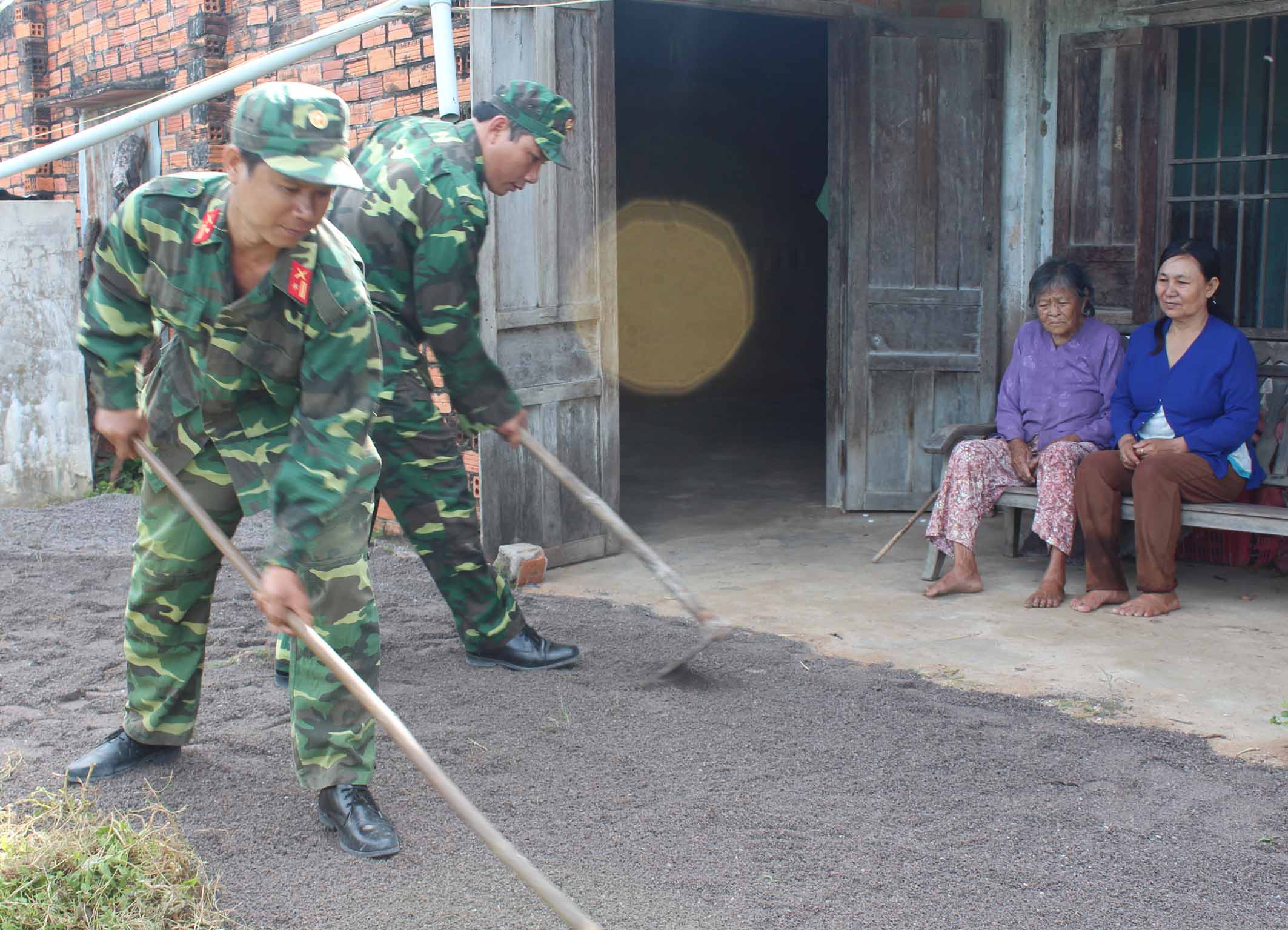 Ngôi nhà của Mẹ Việt Nam anh hùng Nguyễn Thị Mốm, ở thôn Bình An, xã Hàm Chính, huyện Hàm Thuận Bắc, tỉnh Bình Thuận trong những ngày tháng 7 này rất đông vui. Cán bộ, chiến sĩ của Ban CHQS huyện và đoàn viên thanh niên địa phương thường xuyên đến giúp mẹ sửa chữa, dọn dẹp vệ sinh quanh nhà và mua sỏi đá về làm đường vào nhà giúp mẹ.