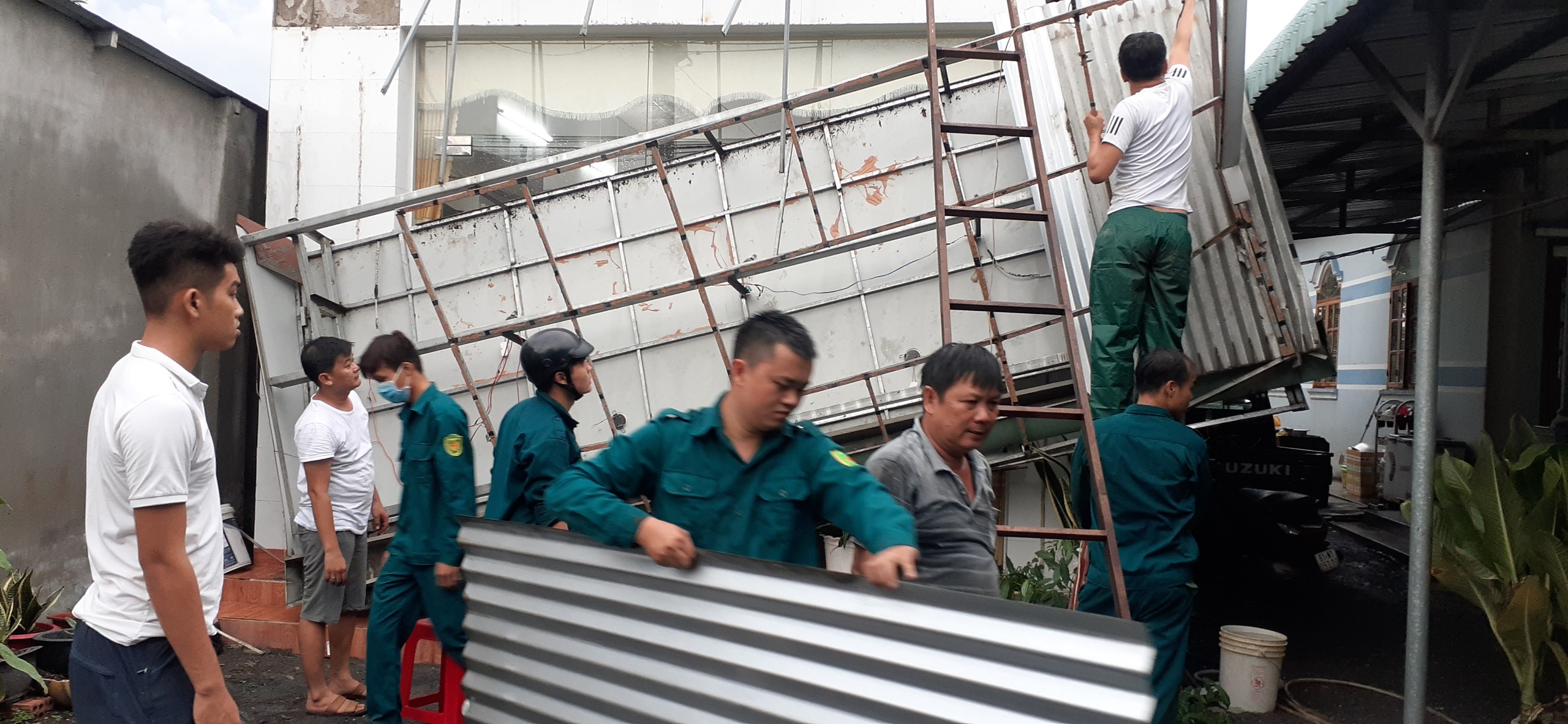 LLVT huyện huyện Bắc Tân Uyên giúp dân khắc phục hậu quả dông lốc