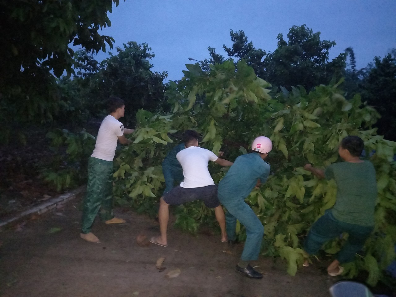 Sau khi nhận được tin báo, Ban CHQS huyện chỉ đạo, huy động cán bộ, chiến sĩ dân quân cơ động, tại chỗ phối hợp với một số người dân giúp bà con bị thiệt hại kịp thời khắc phục hậu quả, ổn định đời sống.