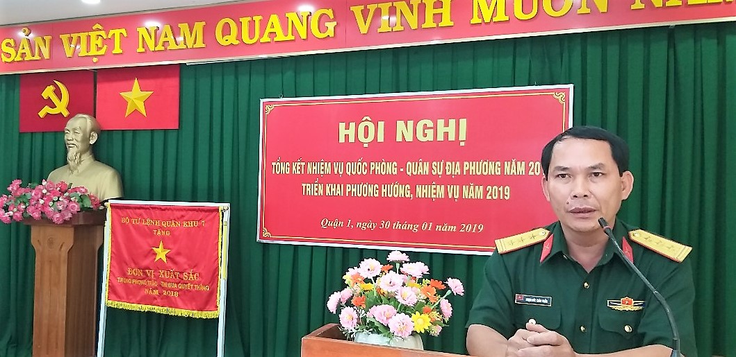 Phát biểu tại hội nghị, Thượng tá Phạm Đức Châu Trần, Phó Tham mưu trưởng Bộ Tư lệnh thành phố Hồ Chí Minh biểu dương nỗ lực, cố gắng của LLVT quận 1 đã hoàn thành xuất sắc nhiệm vụ nhiệm vụ quốc phòng - quân sự địa phương năm 2018.