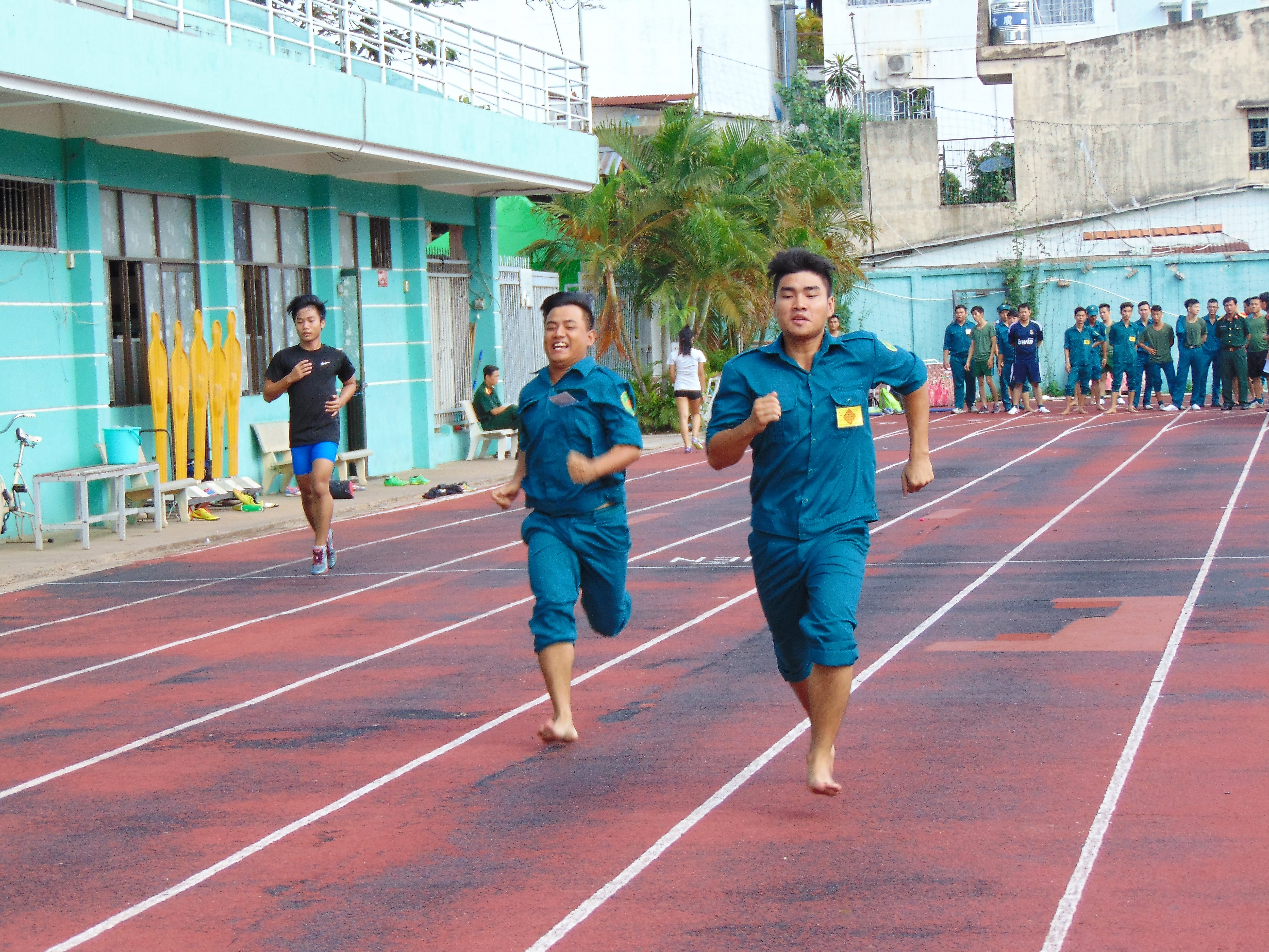 Dân quân quận 1 tham gia hội thao quốc phòng thành phố ở nội dung chạy 100m.