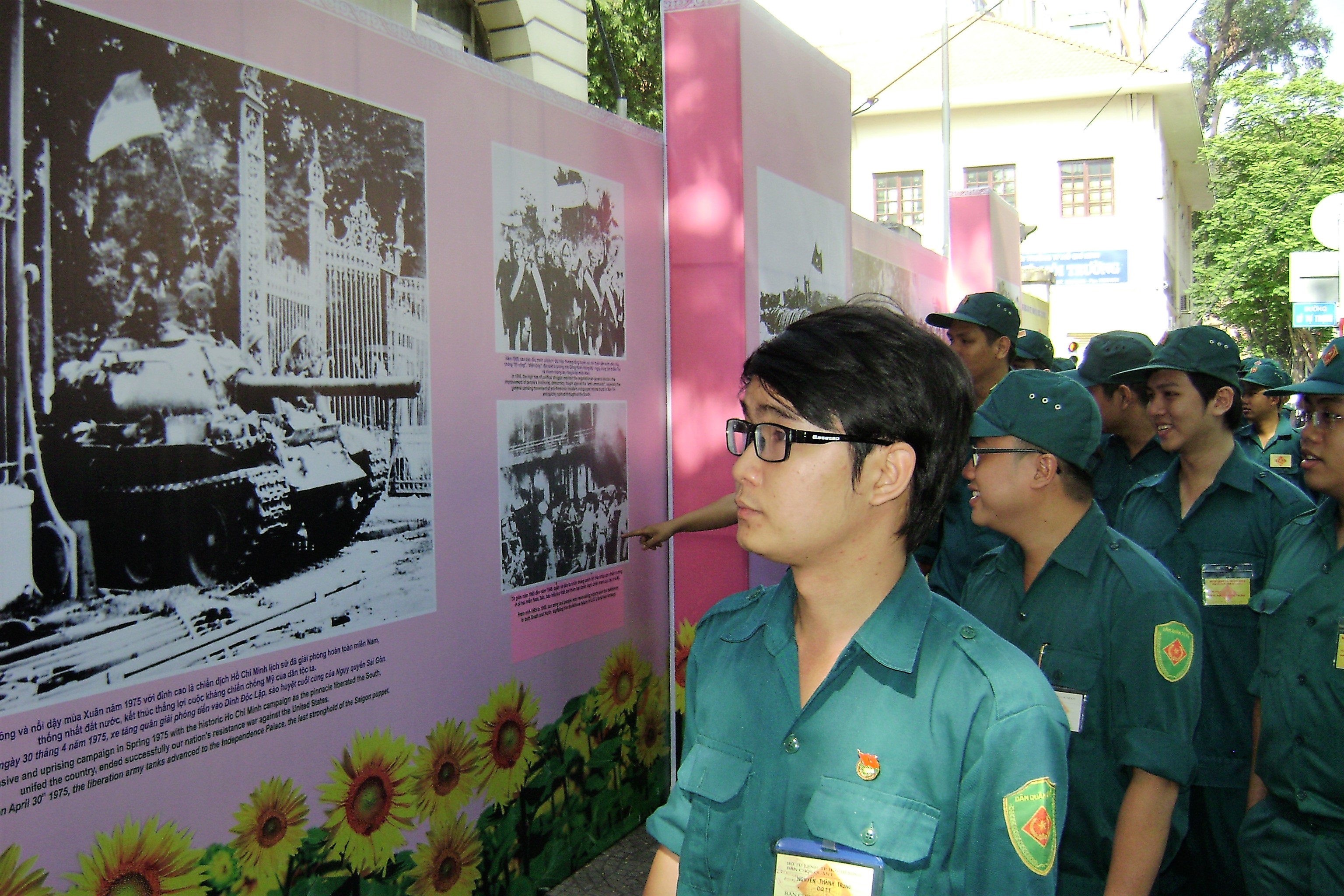 Tại đây, cán bộ, chiến sĩ LLVT quận 1 được tham quan những bức ảnh lịch sử trong Chiến dịch Điện Biên Phủ như: Đoàn dân công đẩy xe đạp thồ chở vũ khí, lương thực, thuốc men lên trận tuyến; bộ đội Việt Nam vẫy cờ chiến thắng trên nóc hầm De Castries; bộ đội Việt Nam bắt tay một lính Pháp bị thương... là những hình ảnh không thể quên trong Chiến dịch Điện Biên Phủ.