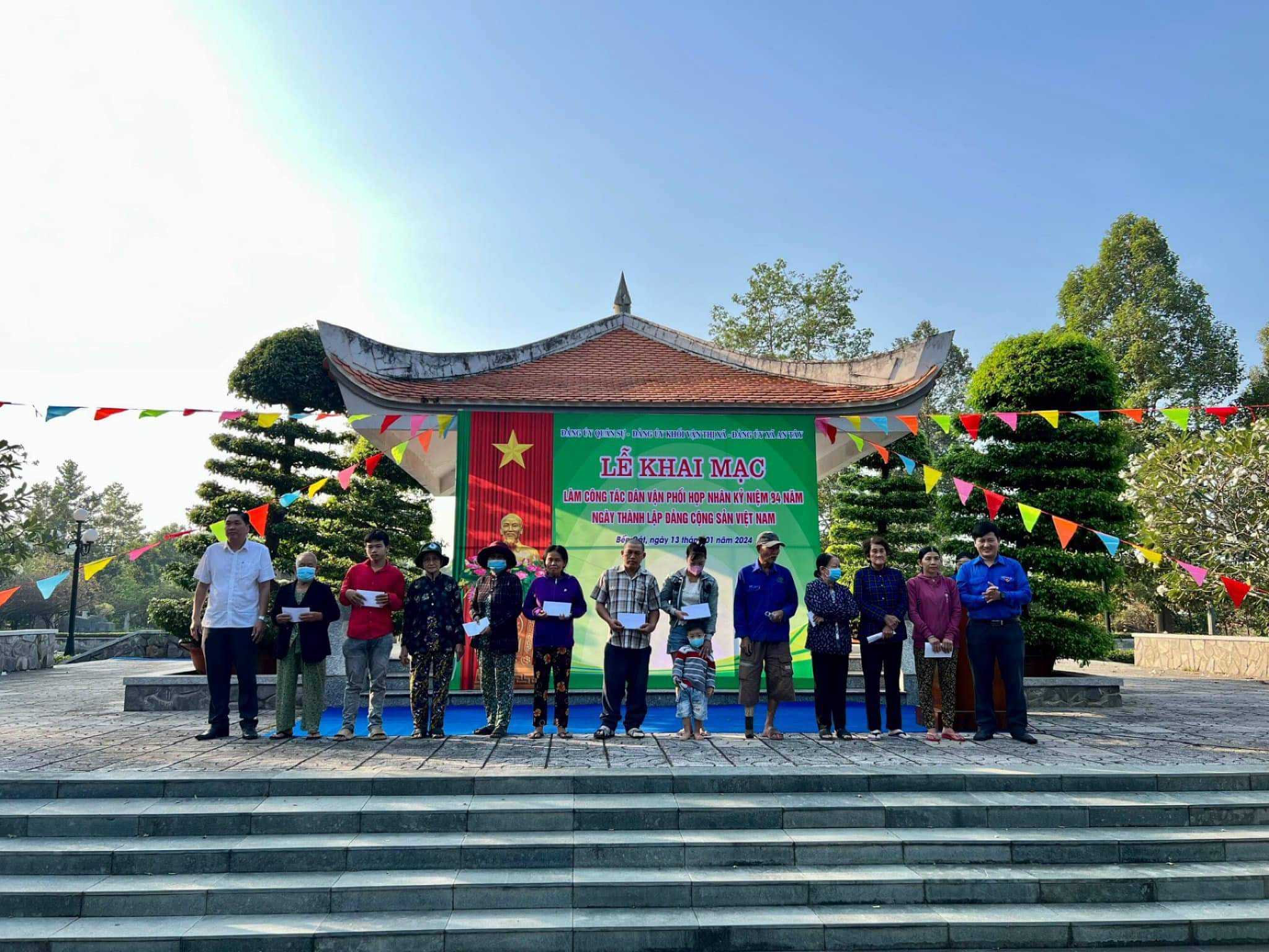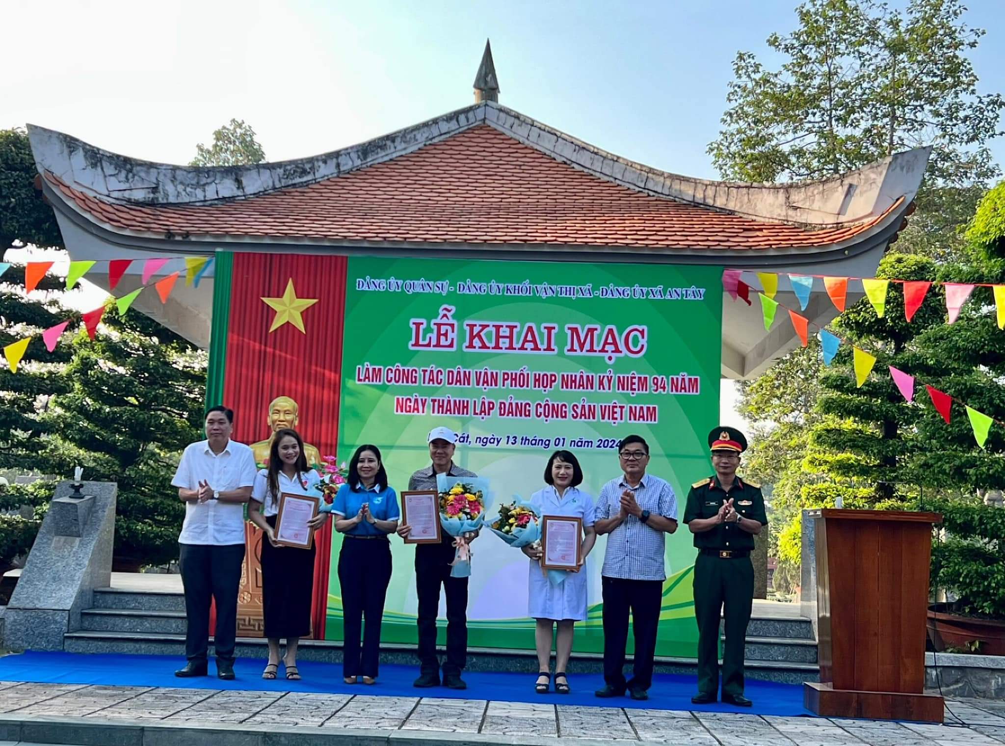 Dự buổi lễ có đồng chí Nguyễn Văn Lộc, Chủ tịch HĐND tỉnh Bình Dương; Đại tá Định Trọng Cơ, Phó Chỉ huy trưởng Bộ Chỉ huy Quân sự tỉnh; Thượng tá Trần Anh Hùng, Phó Chủ nhiệm Chính trị Bộ Chỉ huy Quân sự tỉnh; đồng chí Lê Anh Quý, Trưởng Ban Dân vận Thị ủy; đồng chí Nguyễn Văn Chung, Chủ tịch Ủy ban Mặt trận Tổ quốc Việt Nam thị xã; Thượng tá Bùi Văn Trụ, Chính trị viên Ban Chỉ huy Quân sự thị xã cùng các đồng chí đại diện Hội Phụ nữ, xã An Tây, An Điền, Phú An và các nhà tài trợ.