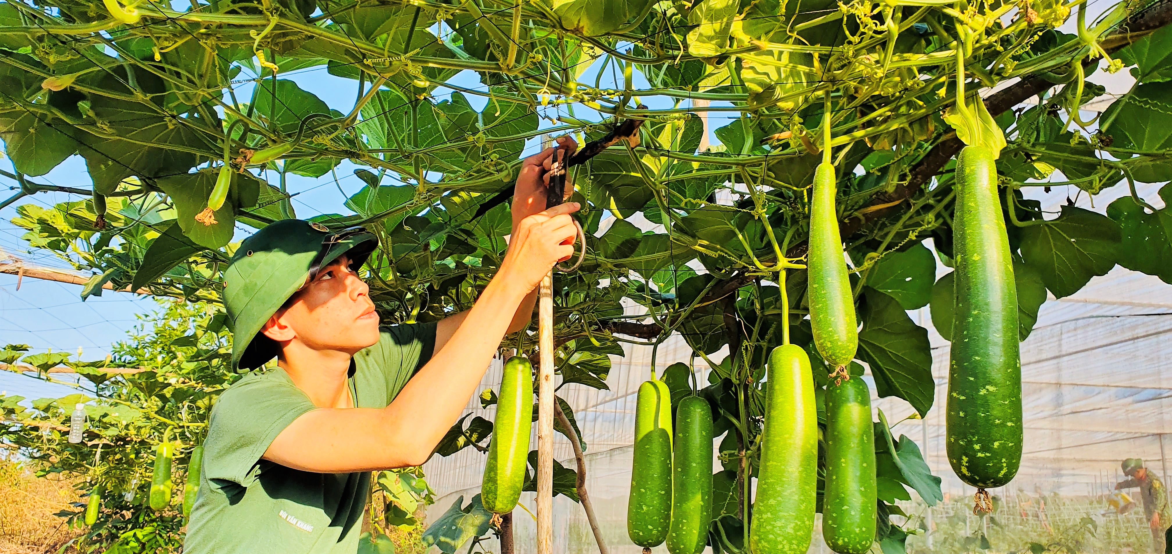 Thu hoạch bầu tại Trung đoàn Minh Đạm.