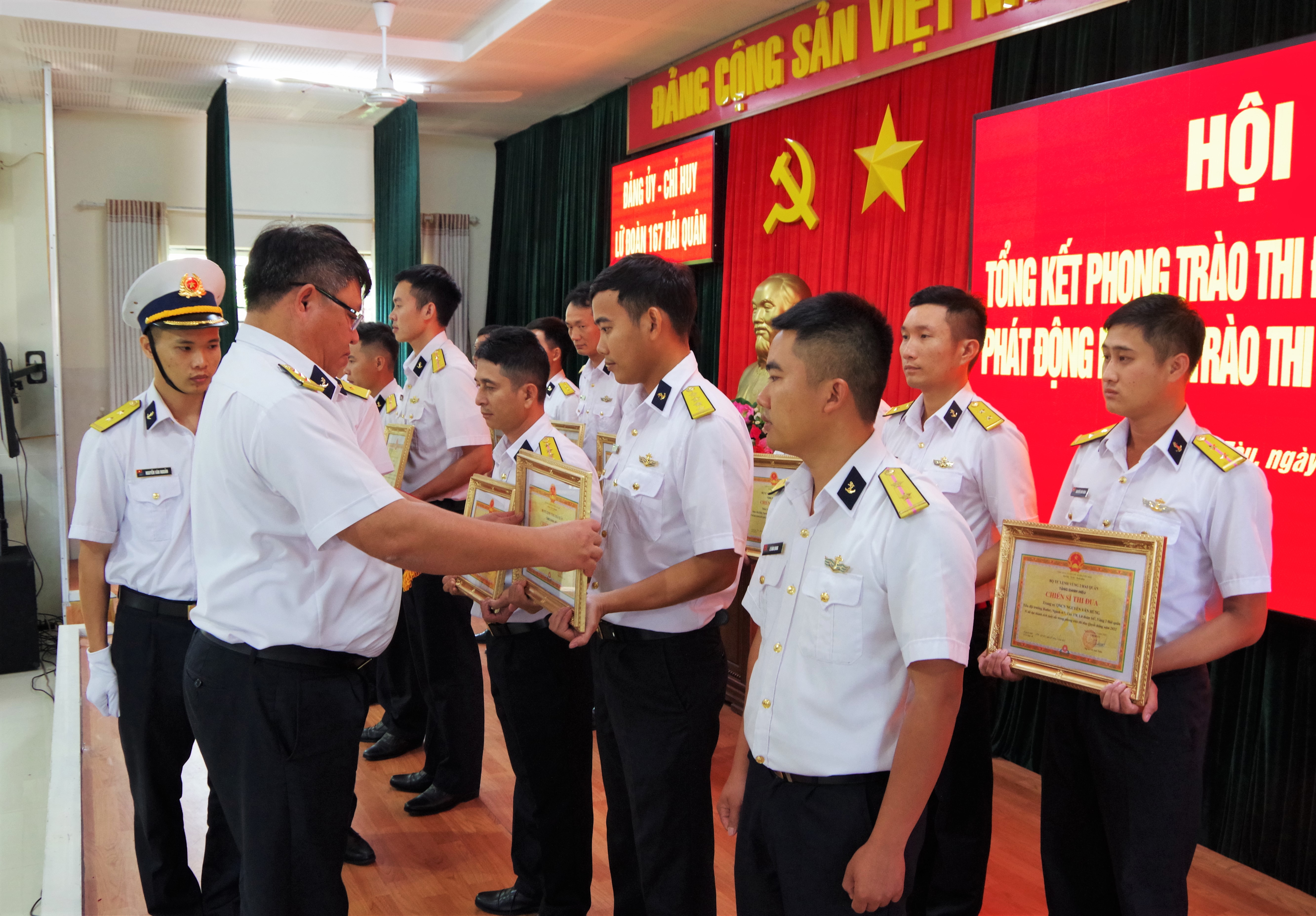 Đại tá Nguyễn Thành Nhân, Chính ủy Lữ đoàn trao thưởng cho các tập thể có thành tích xuất sắc.