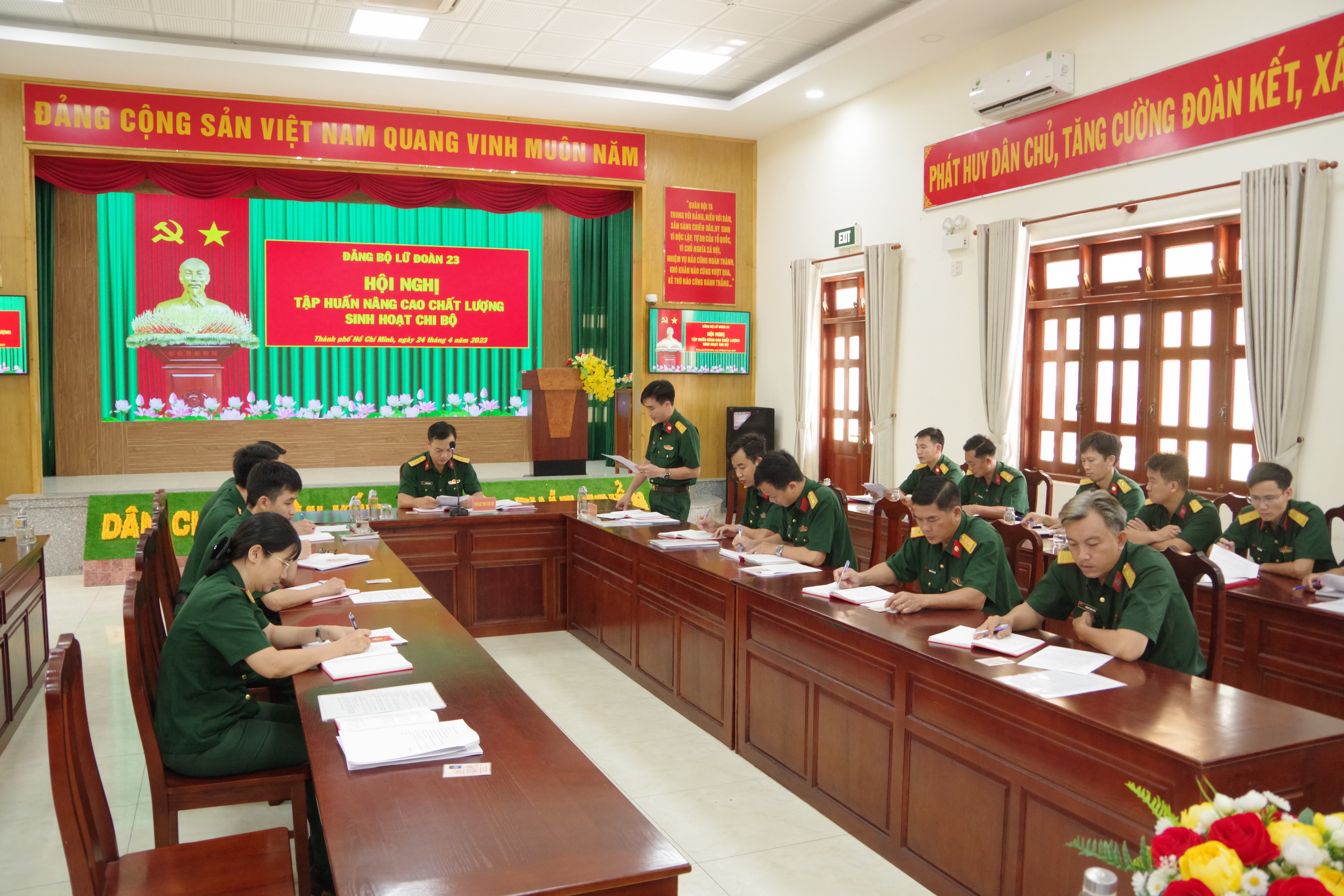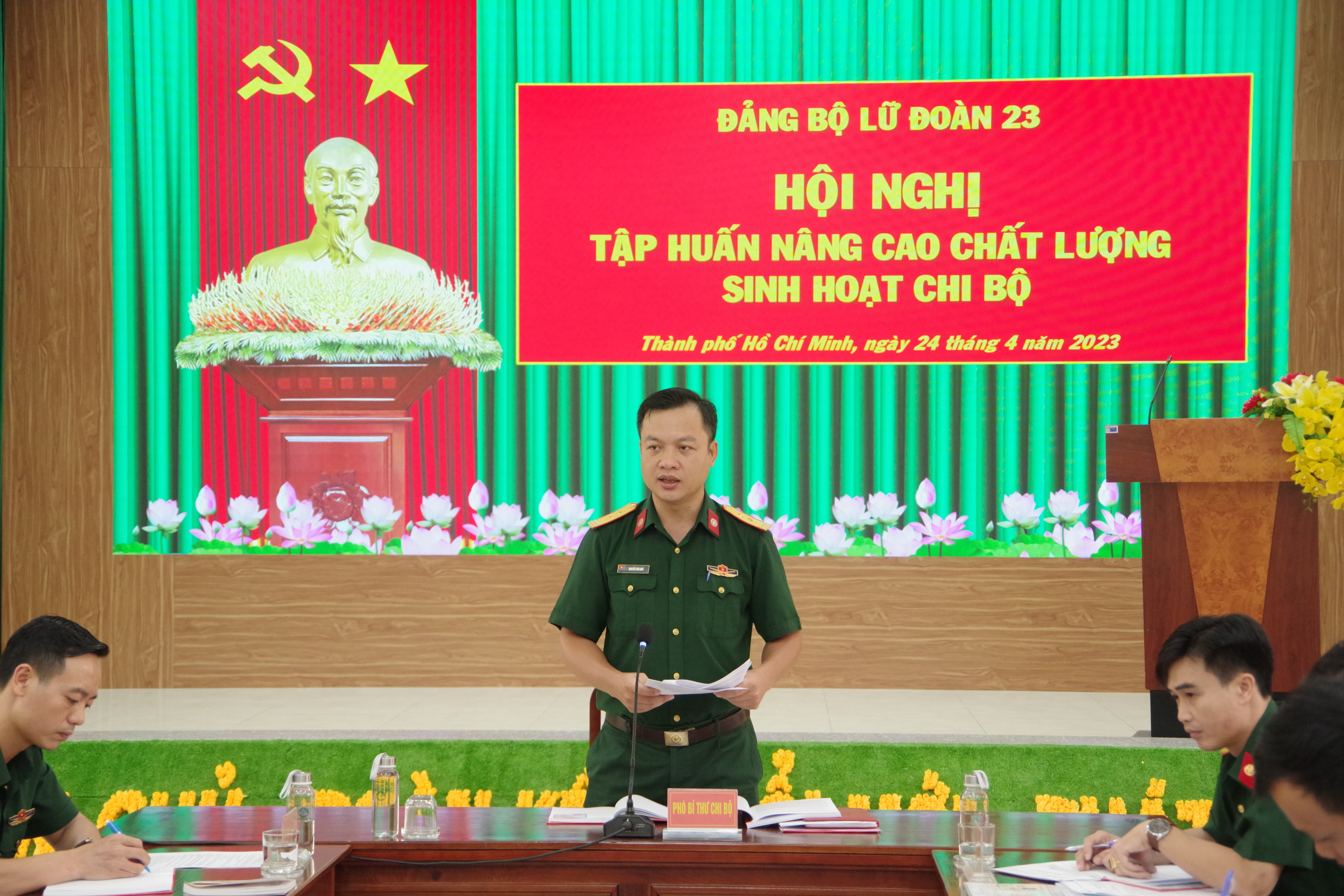 Ngày 24-4, Đảng bộ Lữ đoàn 23 tổ chức tập huấn nâng cao chất lượng sinh hoạt chi bộ. Thượng tá Lưu Đăng Khôi, Ủy viên Thường vụ Đảng ủy, Phó Chính ủy lữ đoàn chủ trì lớp tập huấn.
