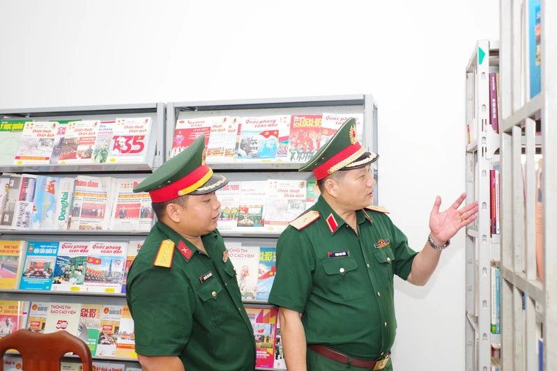 Thiếu tướng Phạm Anh Tuấn, Ủy viên Ban Thường vụ Đảng ủy Quân khu, Chủ nhiệm Chính trị Quân khu tham quan thư viện tại Lữ đoàn 75.