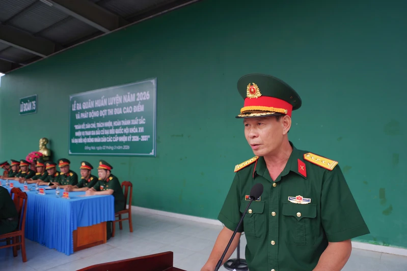Đại tá Nguyễn Công Minh, Bí thư Đảng ủy Lữ đoàn, Chính ủy Lữ đoàn 75 phát động đợt thi đua cao điểm với chủ đề: “Đoàn kết, dân chủ, trách nhiệm, hoàn thành xuất sắc nhiệm vụ tham gia bầu cử đại biểu Quốc hội khóa XVI và đại biểu Hội đồng nhân dân các cấp nhiệm kỳ 2026 - 2031”.