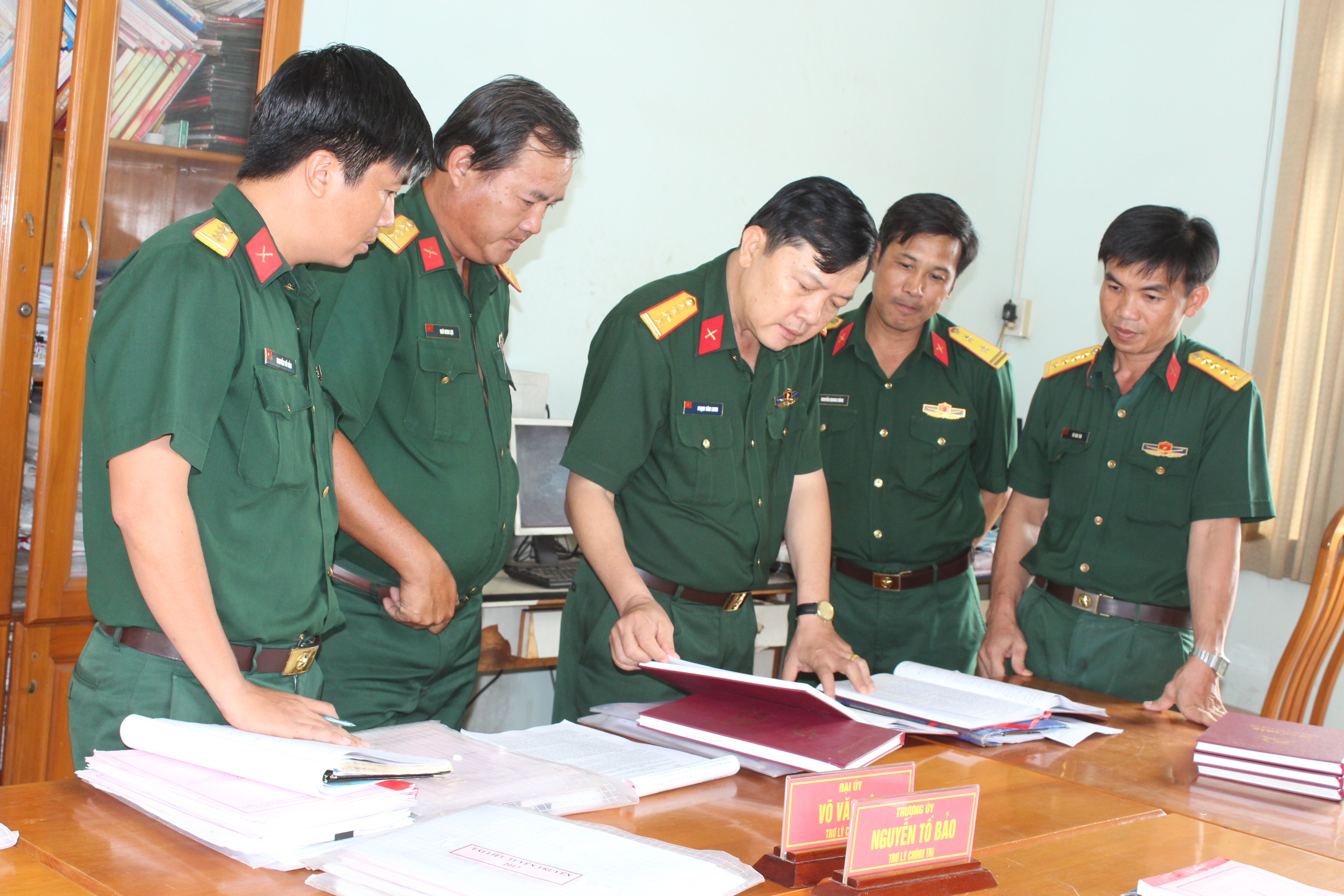 Đảng ủy Quân sự tỉnh kiểm tra sổ ghi chép sinh hoạt chi bộ ở Đảng bộ quân sự thành phố Phan Thiết.