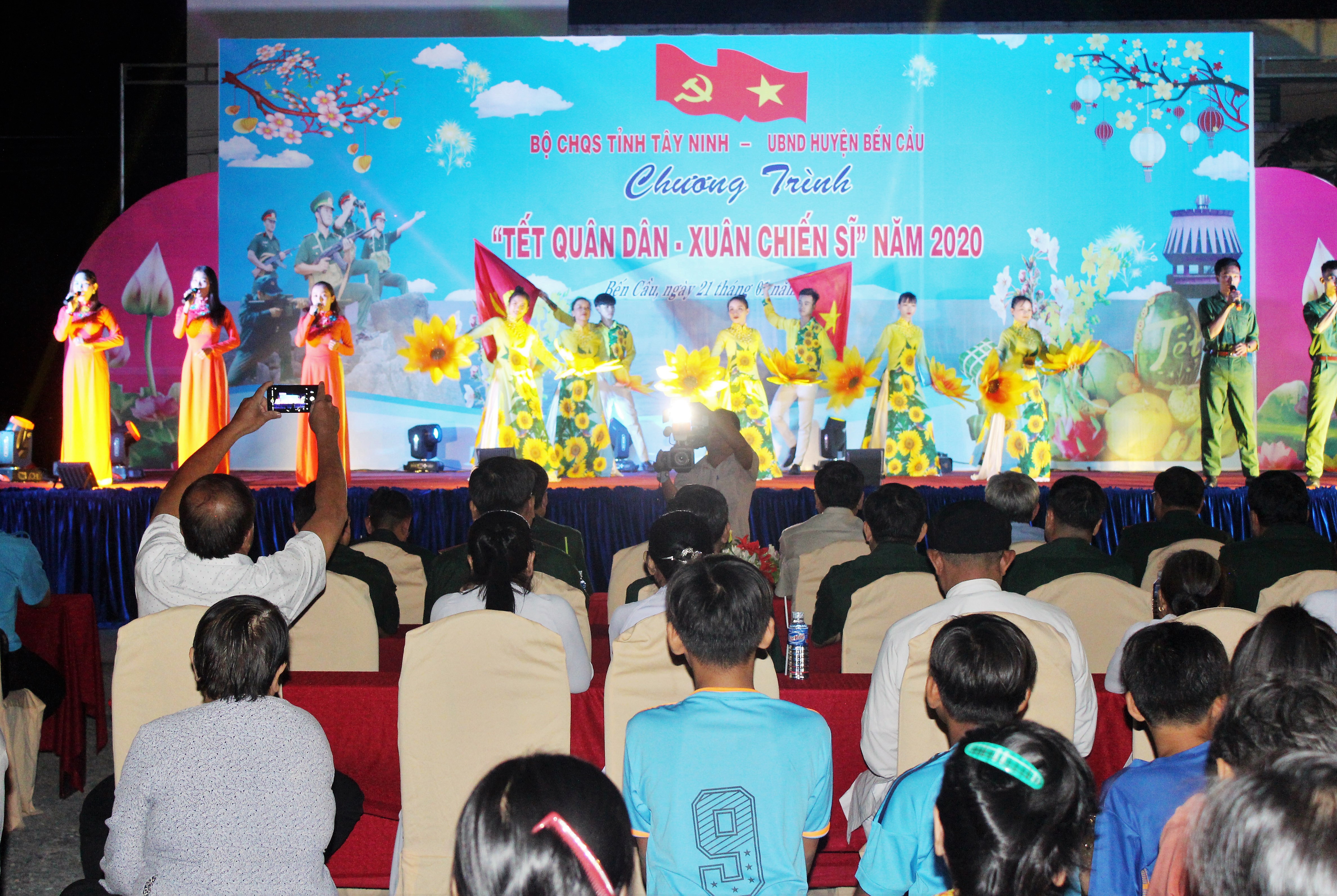 Tại xã Long Phước (huyện Bến Cầu, tỉnh Tây Ninh), Bộ CHQS tỉnh Tây Ninh phối hợp với UBND huyện Bến Cầu tổ chức Chương trình “Tết quân dân - Xuân chiến sĩ” năm 2020. Tại chương trình bên cạnh giao lưu văn nghệ mừng Đảng- mừng xuân”, Bộ CHQS tỉnh Tây Ninh trao 90 suất quà tặng các Mẹ Việt Nam Anh hùng, thương binh nặng, nhân dân nghèo các đơn vị đang làm nhiệm vụ trên tuyến biên giới của tỉnh.