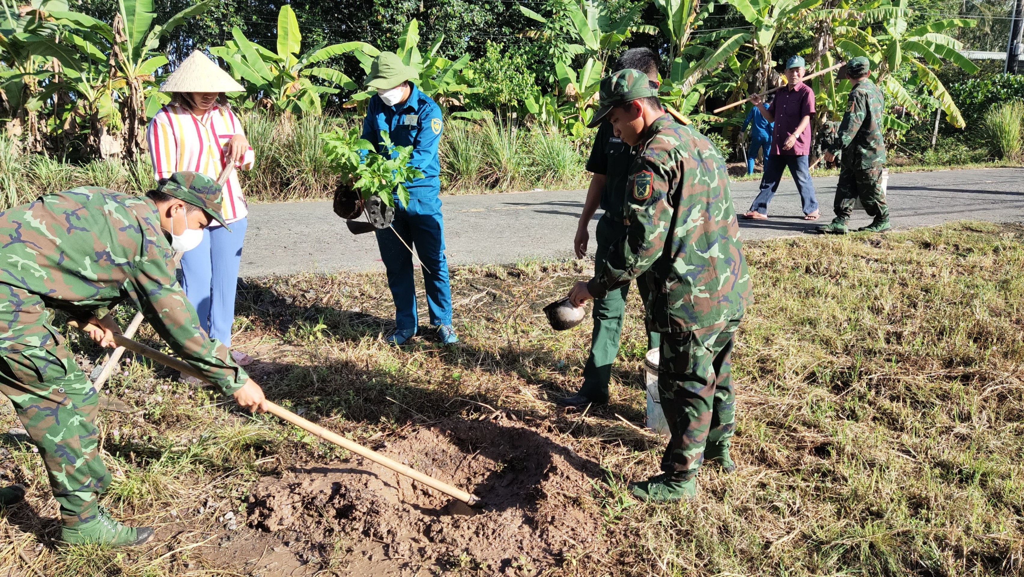 Cán bộ, chiến sĩ Trạm SK13, núi Cậu cùng đơn vị kết nghĩa làm công tác dân vận trên địa bàn đóng quân.