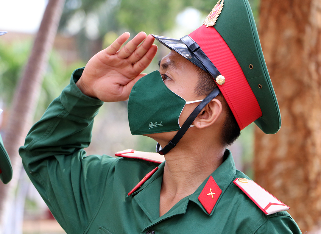 Chiến sĩ mới thực hiện động tác chào.