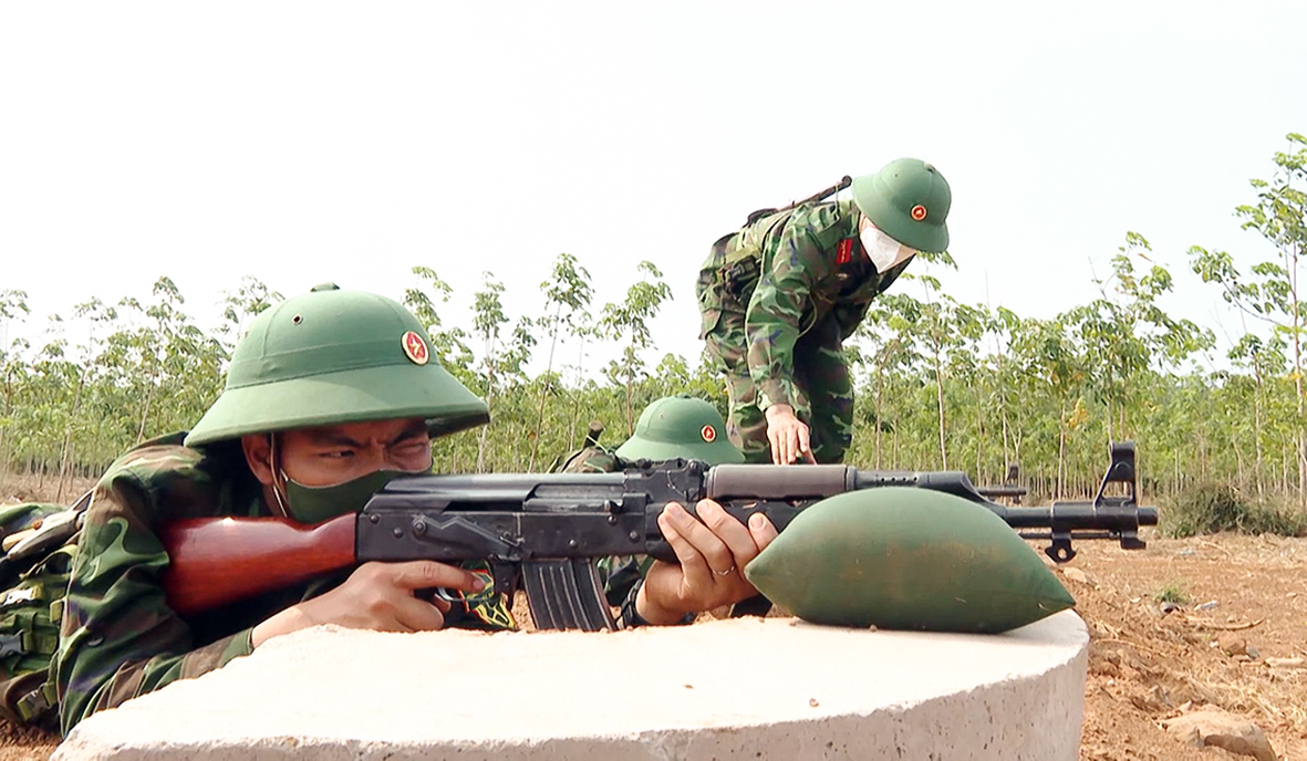 Chiến sĩ mới huấn luyện các tư thế bắn súng AK bài 1.