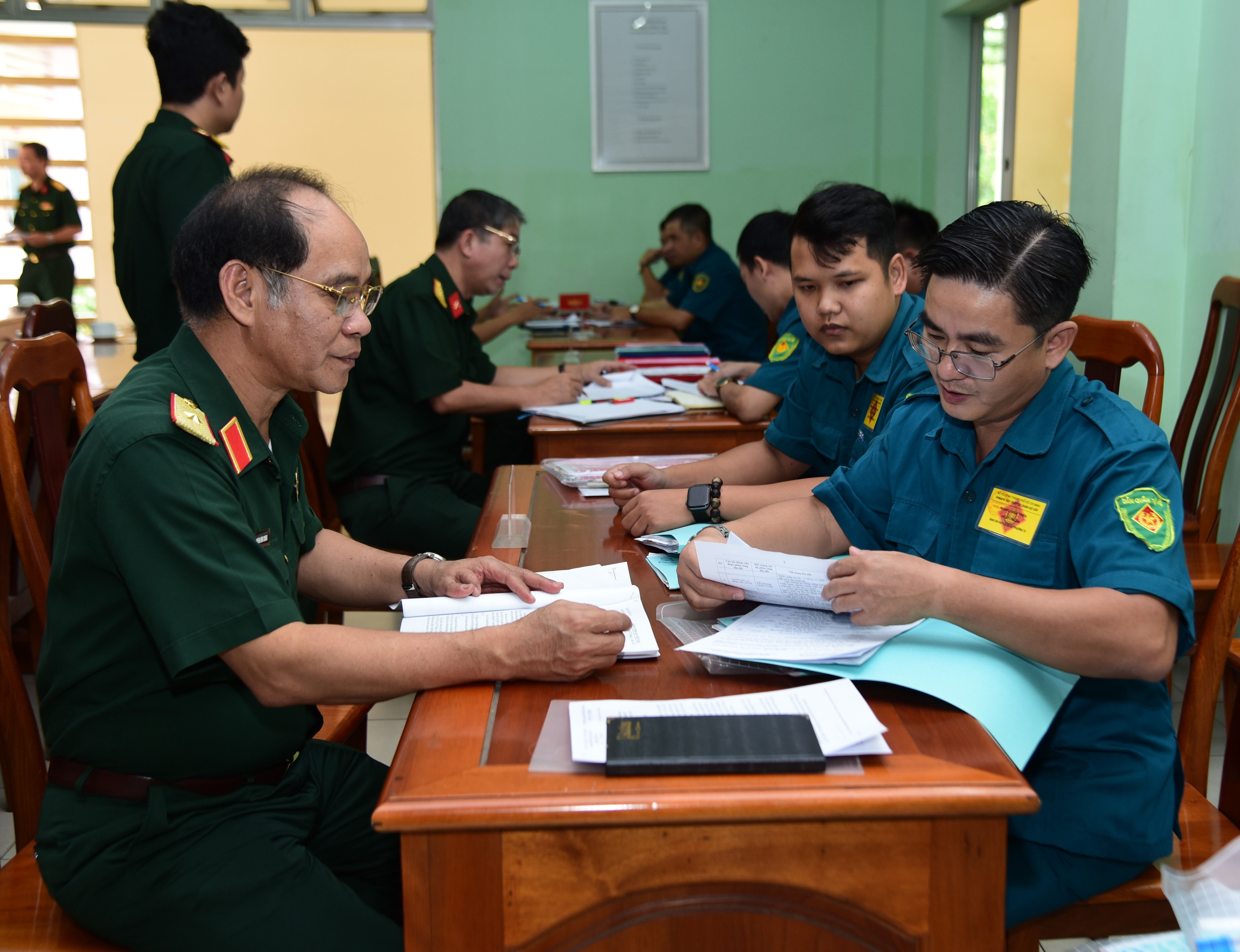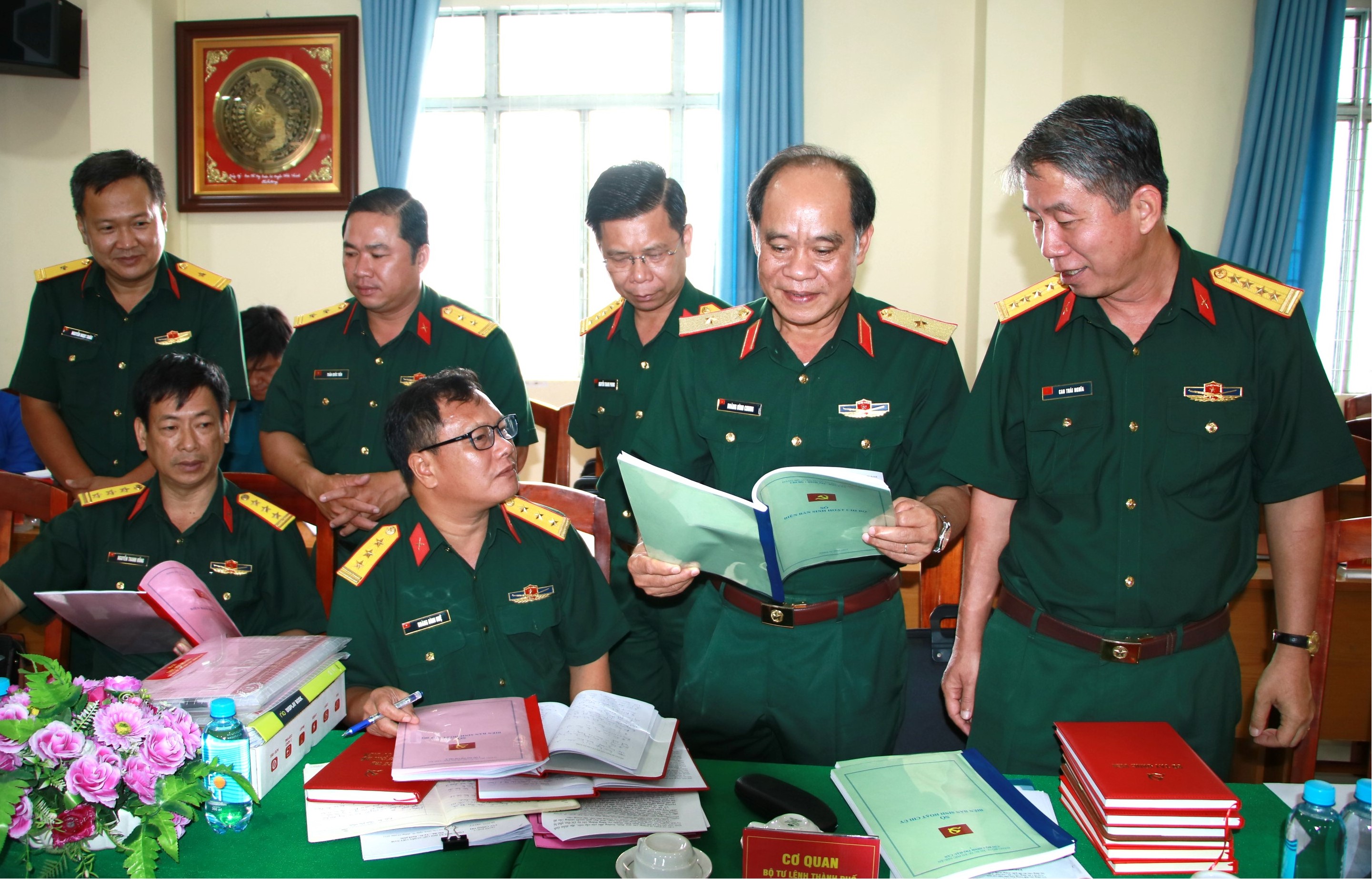Thiếu tướng Hoàng Đình Chung, Chủ nhiệm Chính trị Quân khu kiểm tra sổ sách, biên bản sinh hoạt chi bộ quân sự (phường 10, quận Gò Vấp, TPHCM)