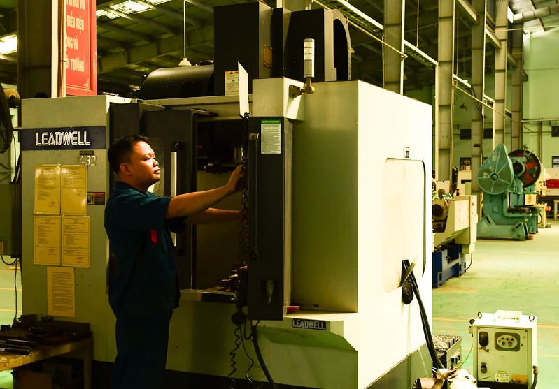 Công nhân phân xưởng cơ khí Công ty TTĐT Z755 vận hành máy CNC.