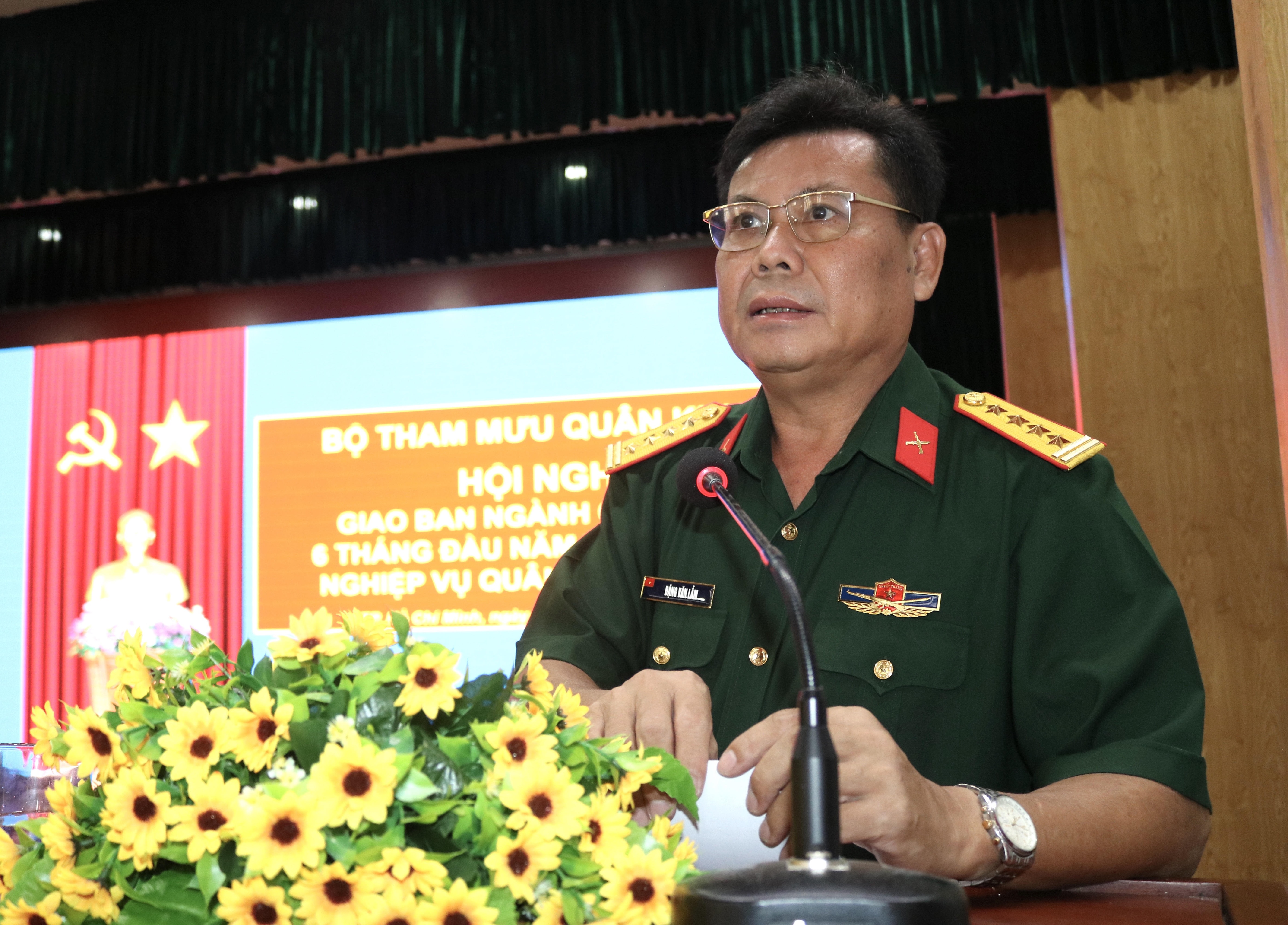 Đại tá Đặng Văn Lẫm, Phó Tham mưu trưởng Quân khu phát biểu chỉ đạo tại hội nghị.