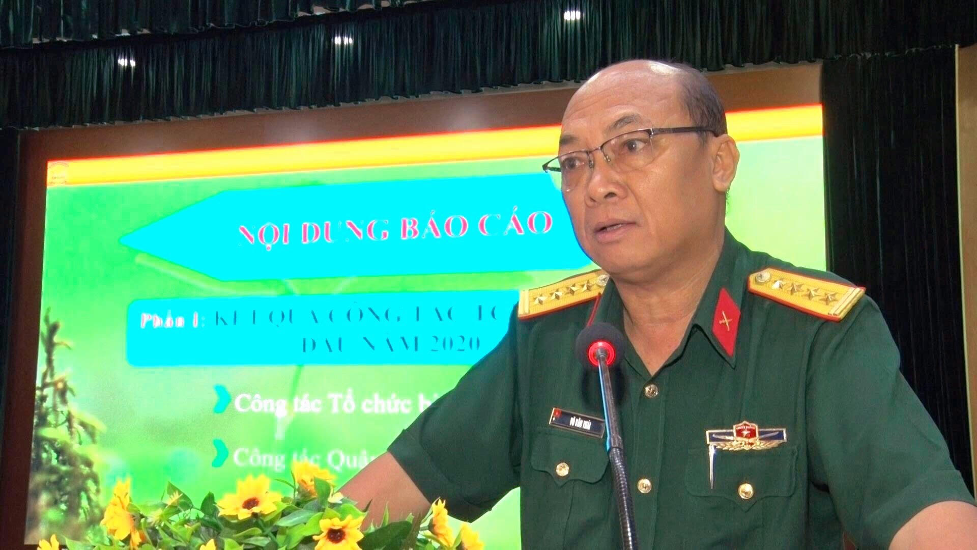 Đại tá Võ Văn Thái, Trưởng phòng Quân lực báo cáo kết quả công tác tổ chức lực lượng 6 tháng đầu năm 2020.