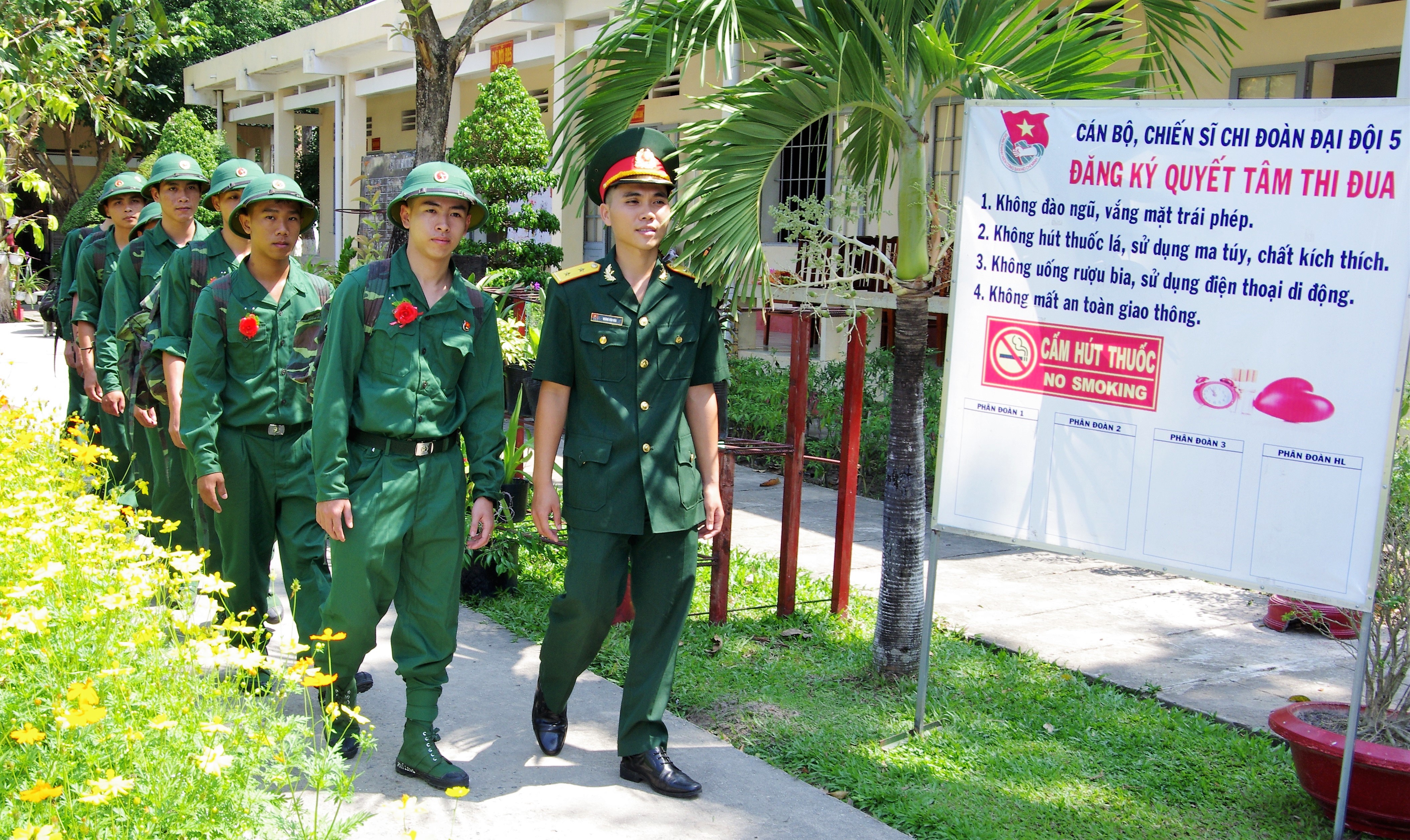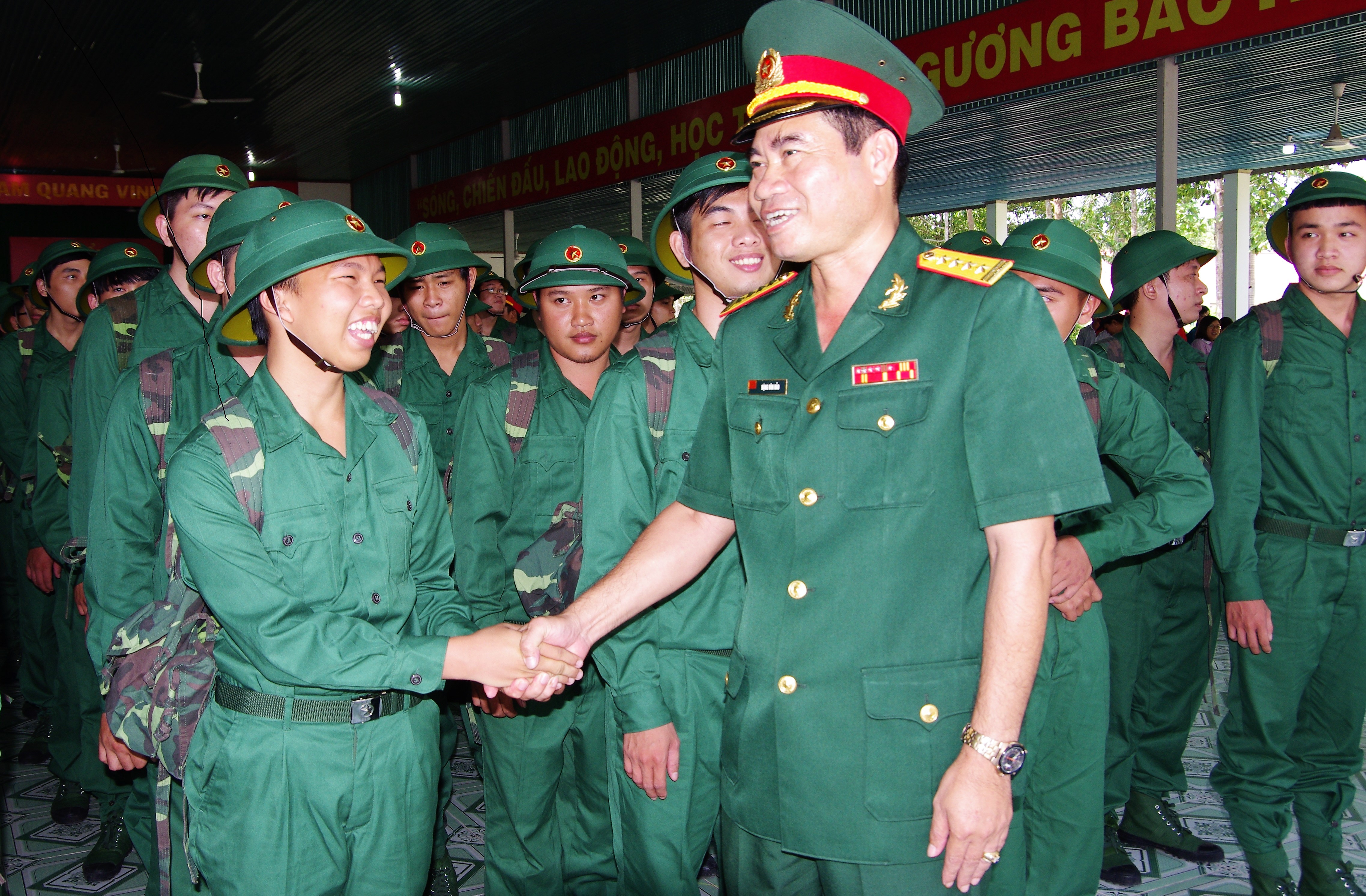 Chỉ huy Sư đoàn 5 đón chiến sĩ mới.