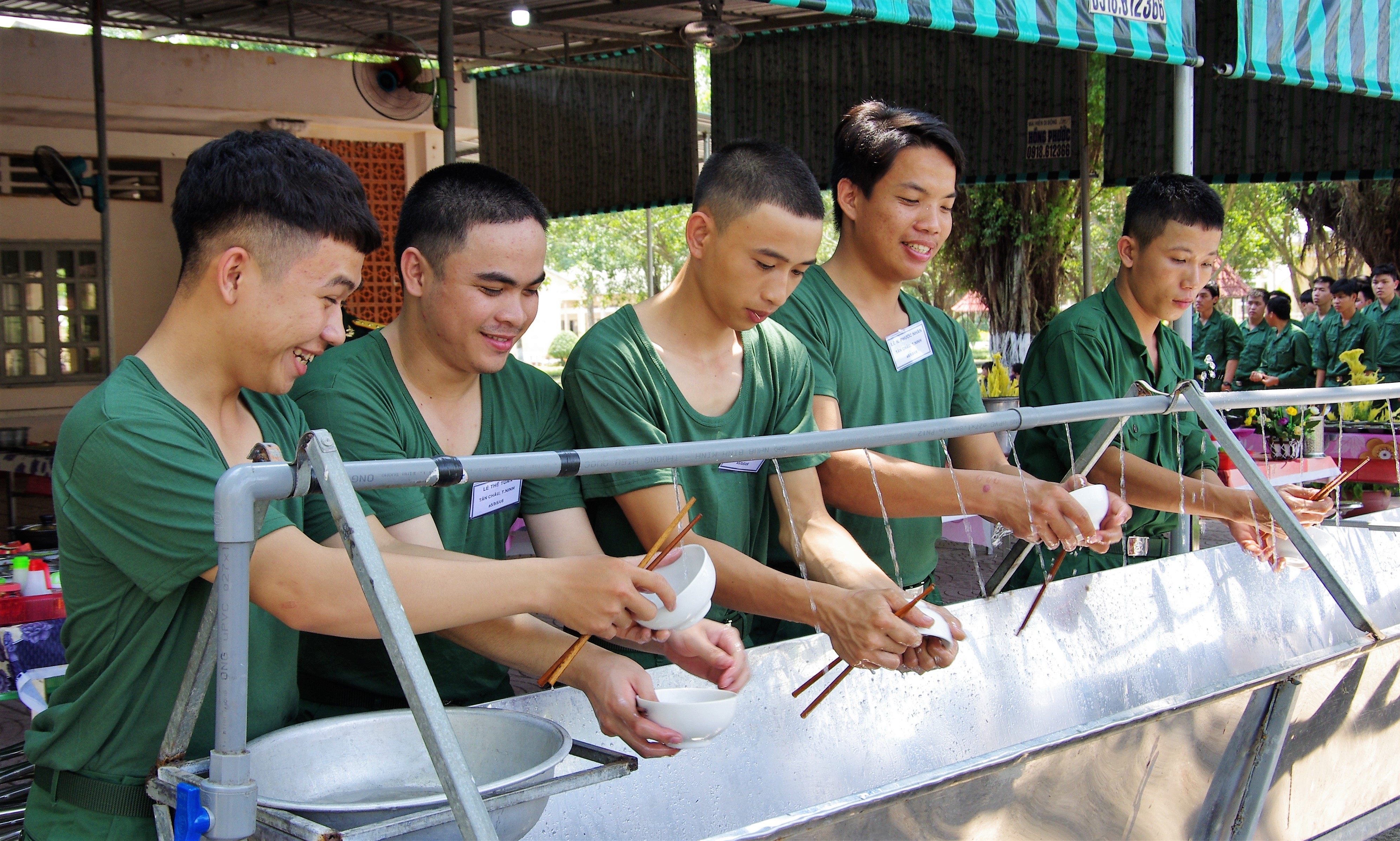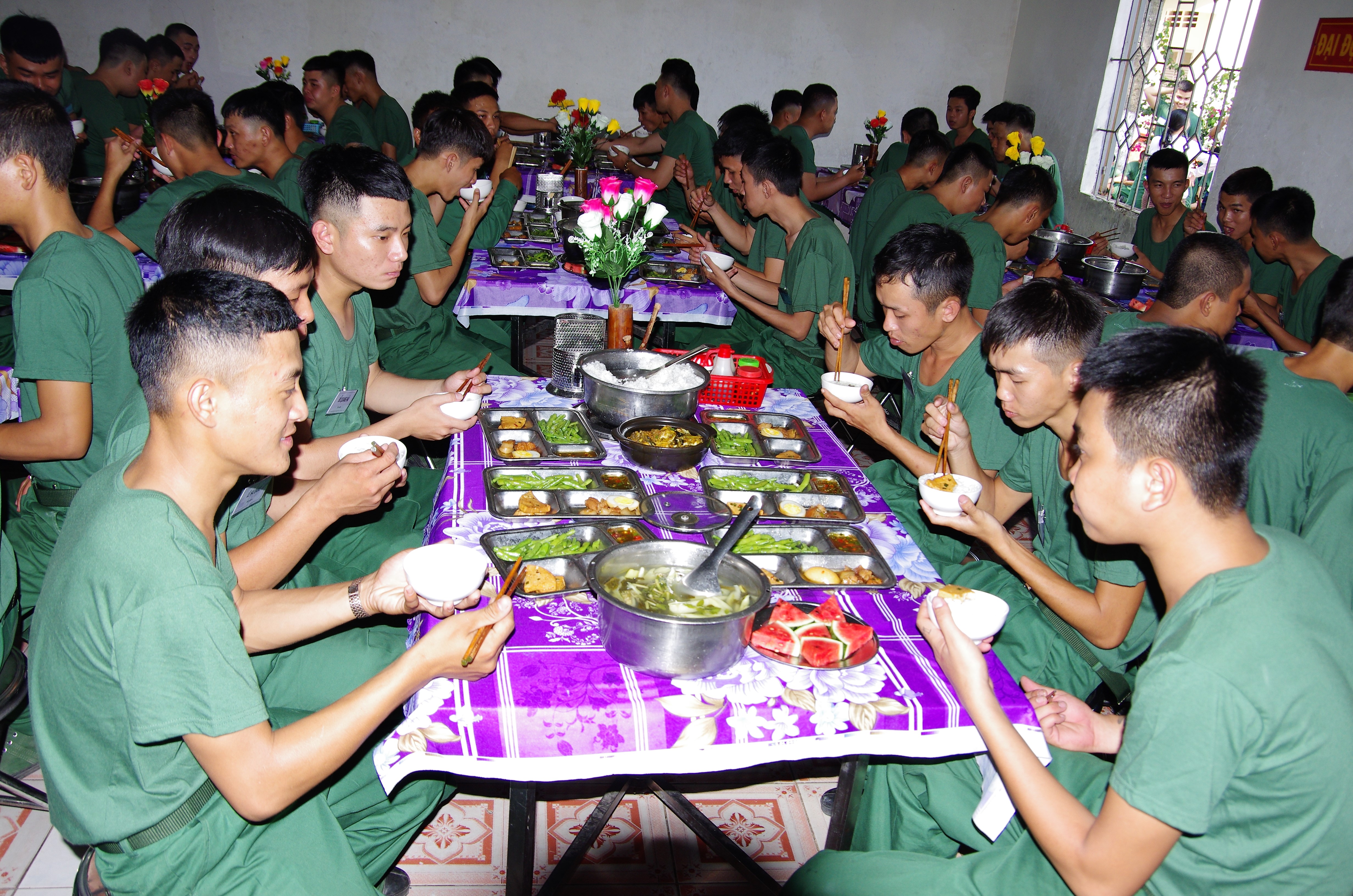 Ăn bữa cơm đầu tiên trong đời quân ngũ.