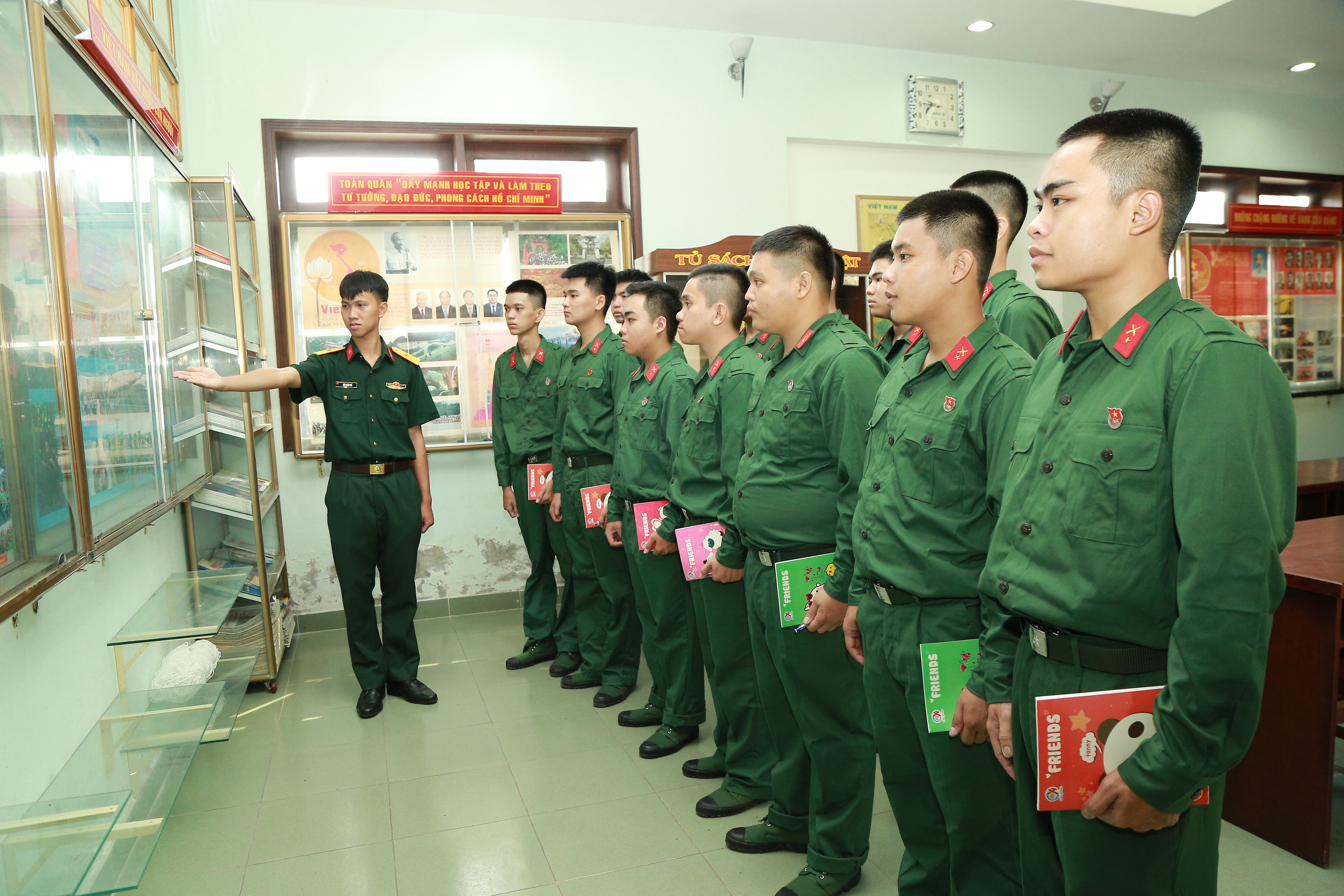 Chiến sĩ mới tìm hiểu truyền thống đơn vị.