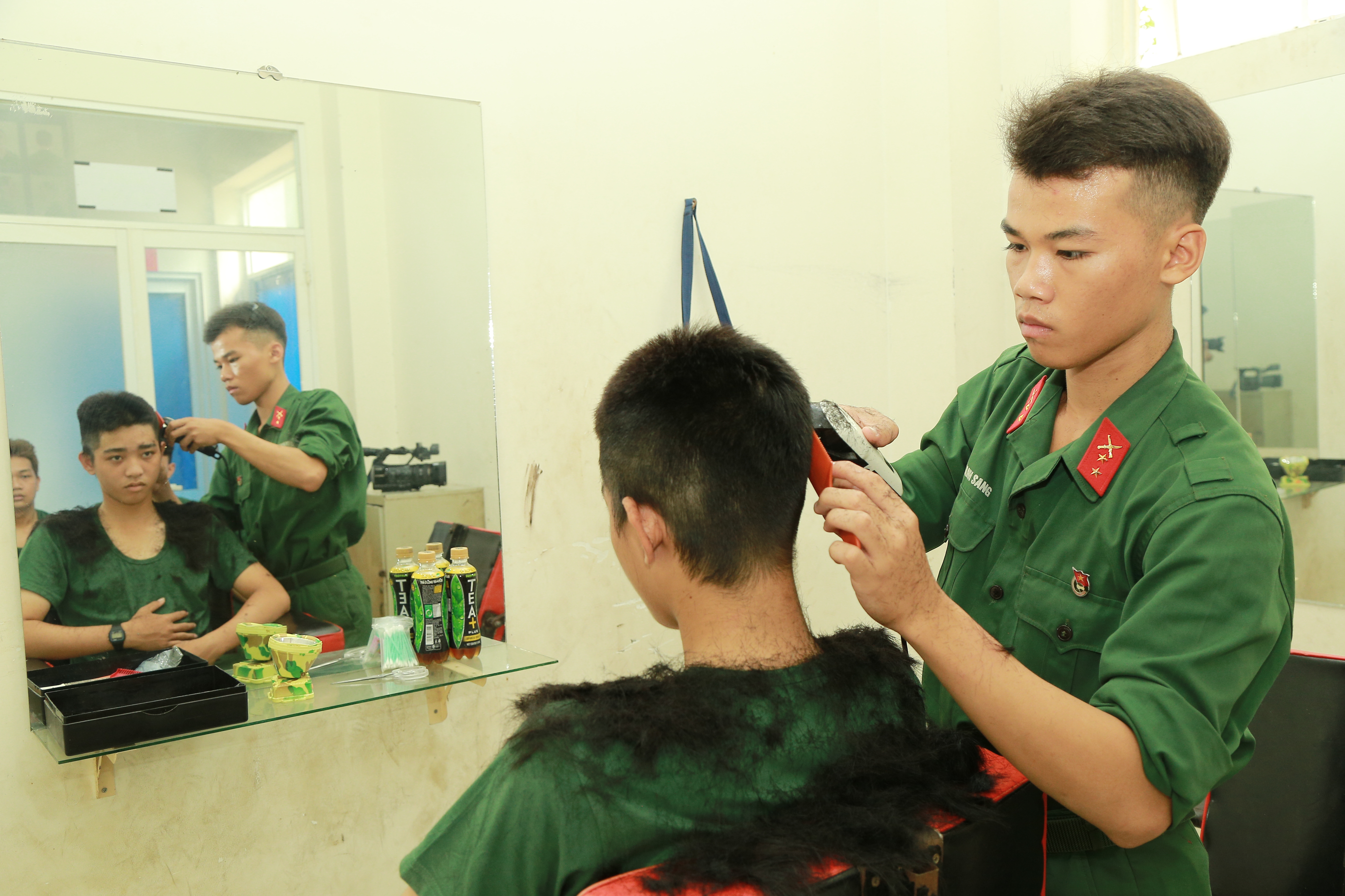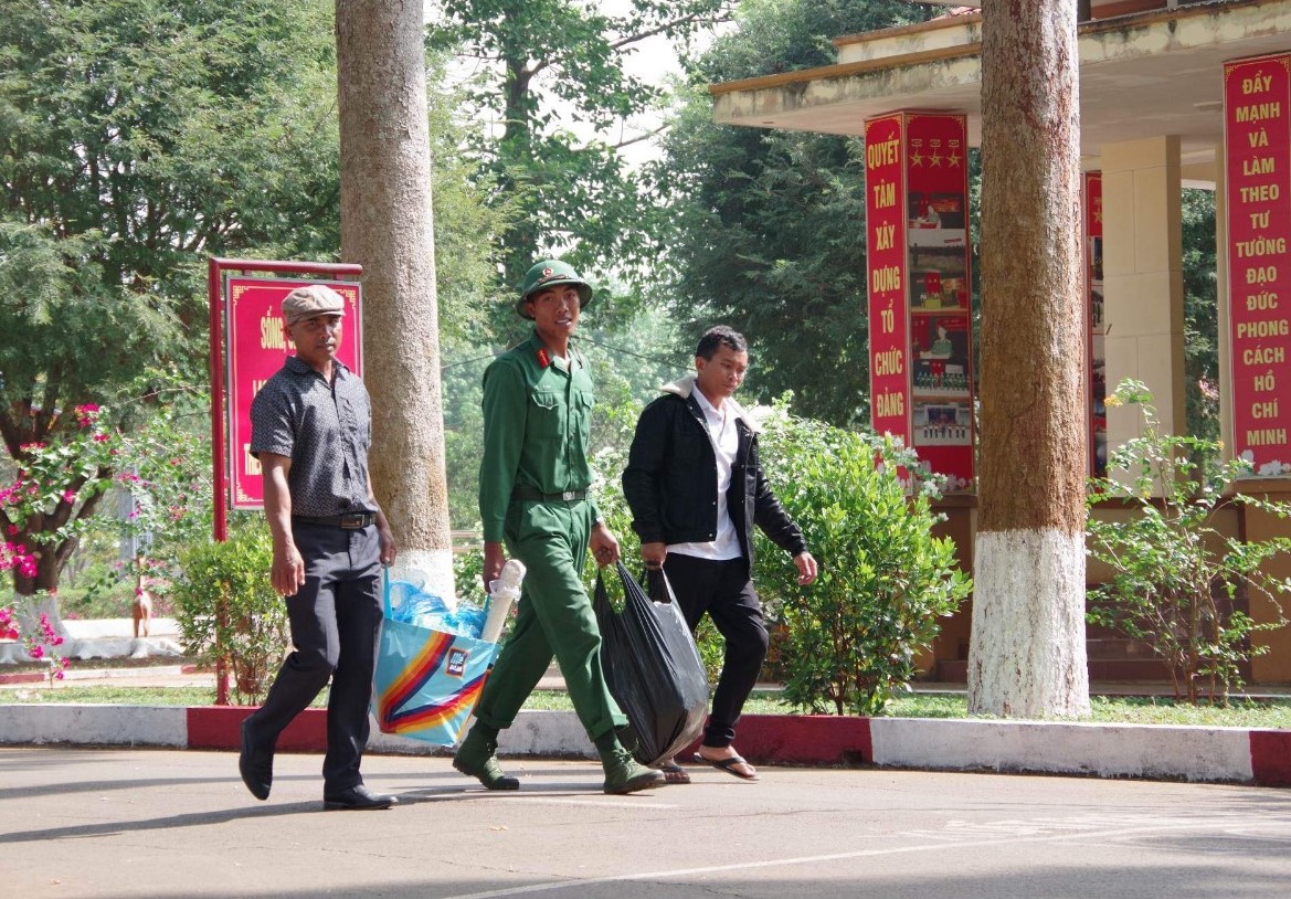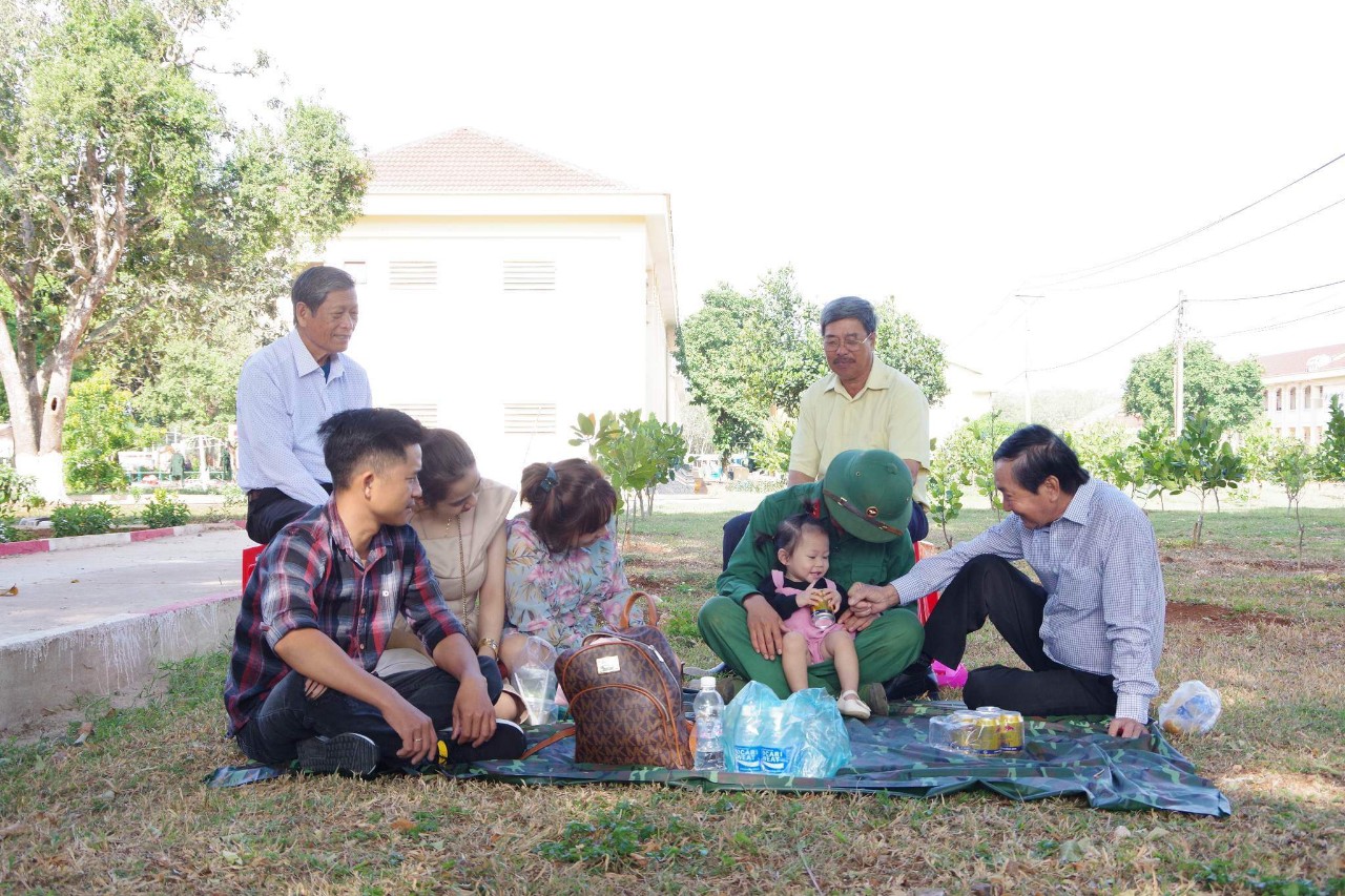 Thân nhân được hướng dẫn vào thăm đơn vị và chiến sĩ mới.