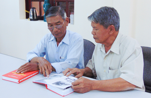 Ông Nguyễn Văn Bình (bìa phải) và ông Nguyễn Văn Hùng chia sẻ những kỷ niệm trong kháng chiến.