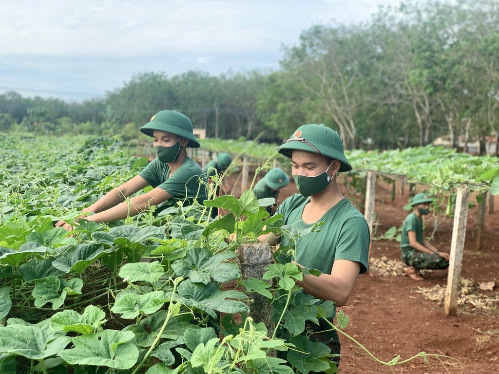 Sau giờ học tập chiến sĩ mới cùng nhau tăng gia sản xuất.
