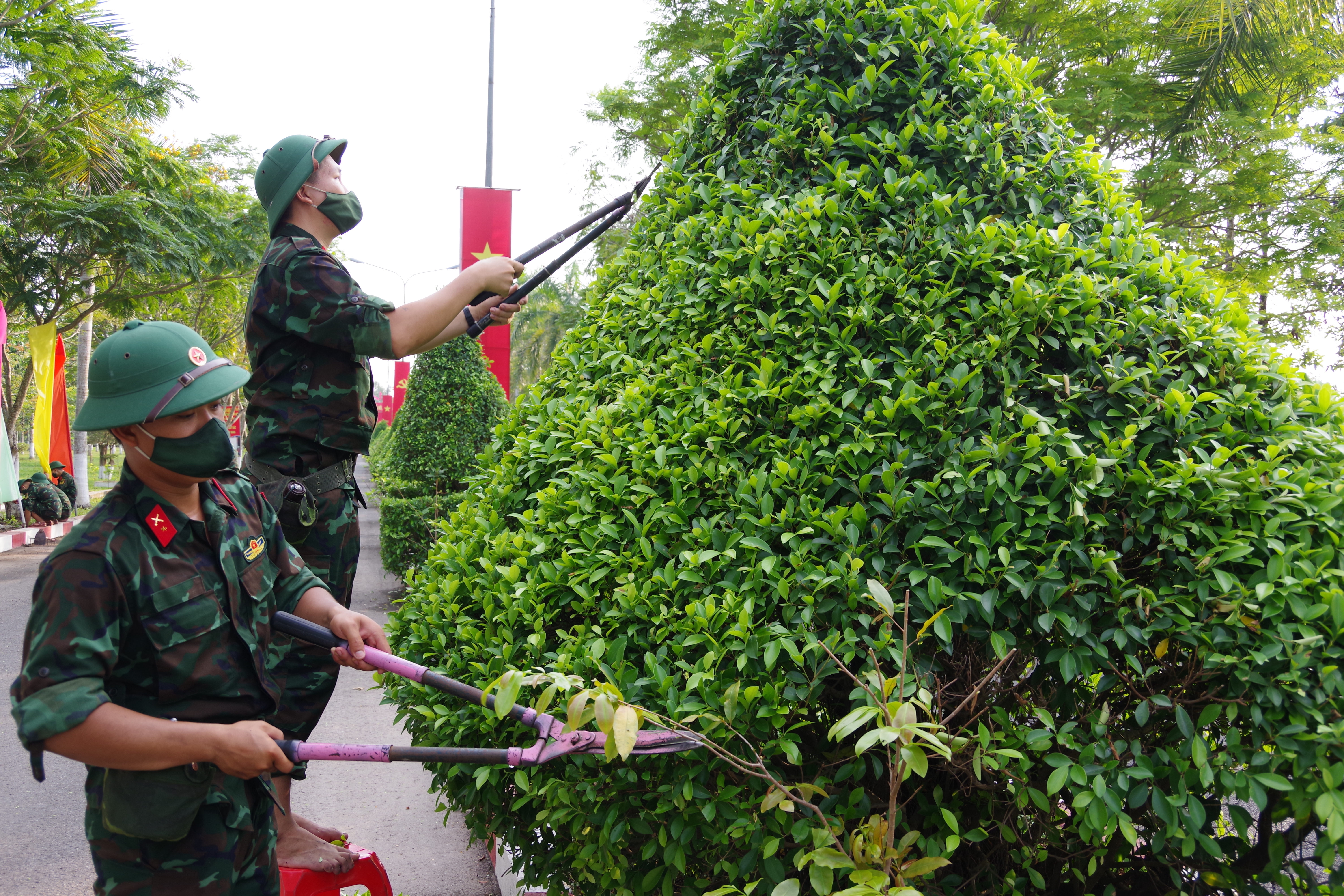 Chiến sĩ mới chăm sóc cảnh quan môi trường.