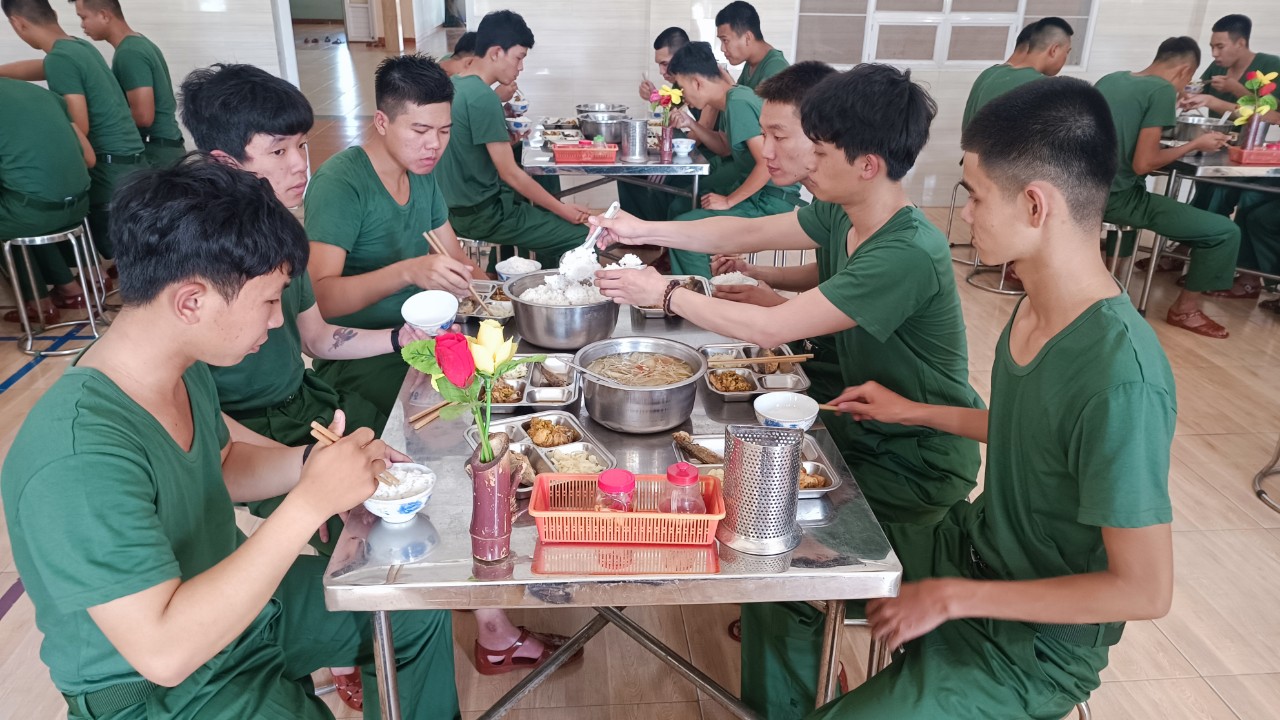 Bữa cơm đầu tiên khi chiến sĩ mới về đơn vị.
