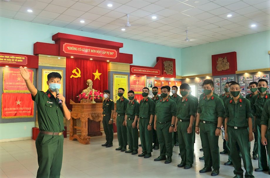 Giáo dục truyền thống trung đoàn cho chiến sĩ mới.