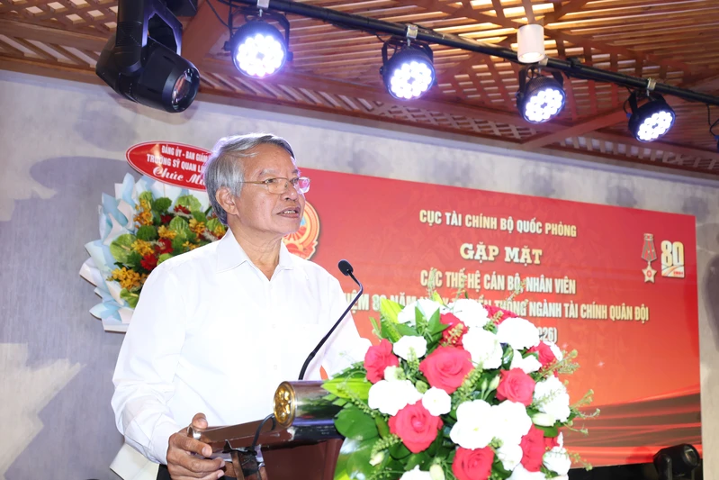Thiếu tướng Đỗ Đình Mỹ, Phó Bí thư Đảng ủy, Phó Cục trưởng Cục Tài chính, Bộ Quốc phòng phát biểu ôn lại truyền thống Ngành Tài chính Quân đội.