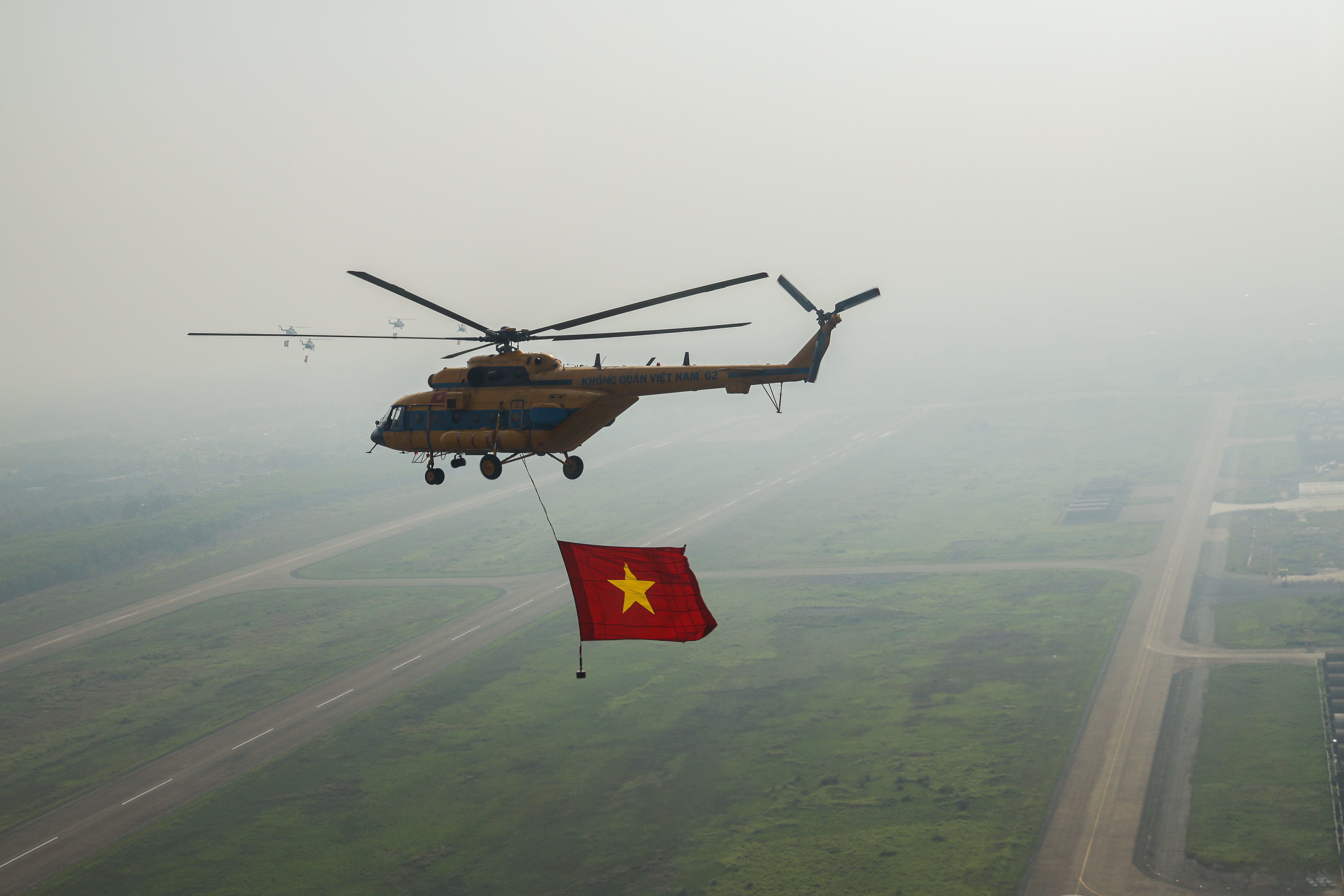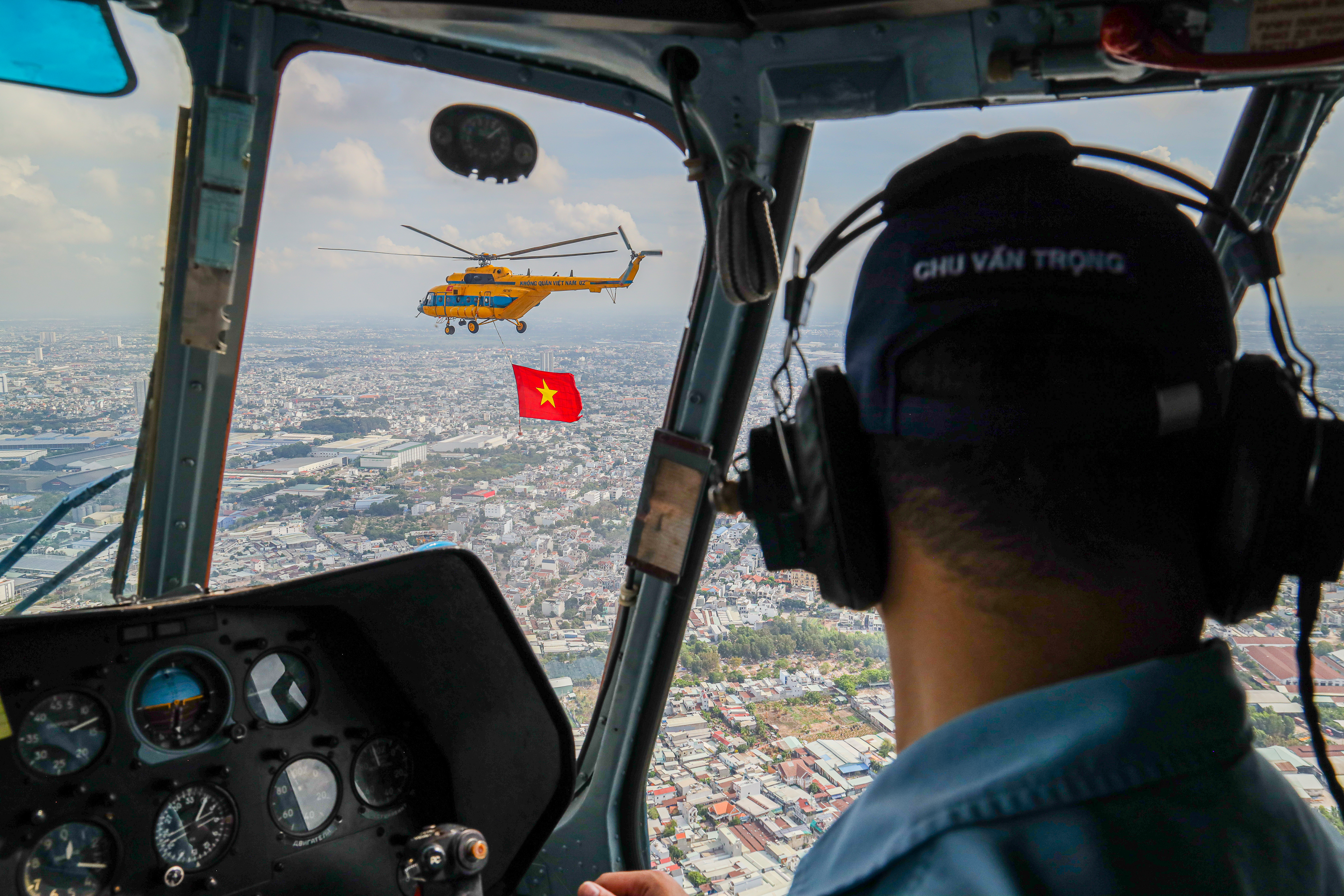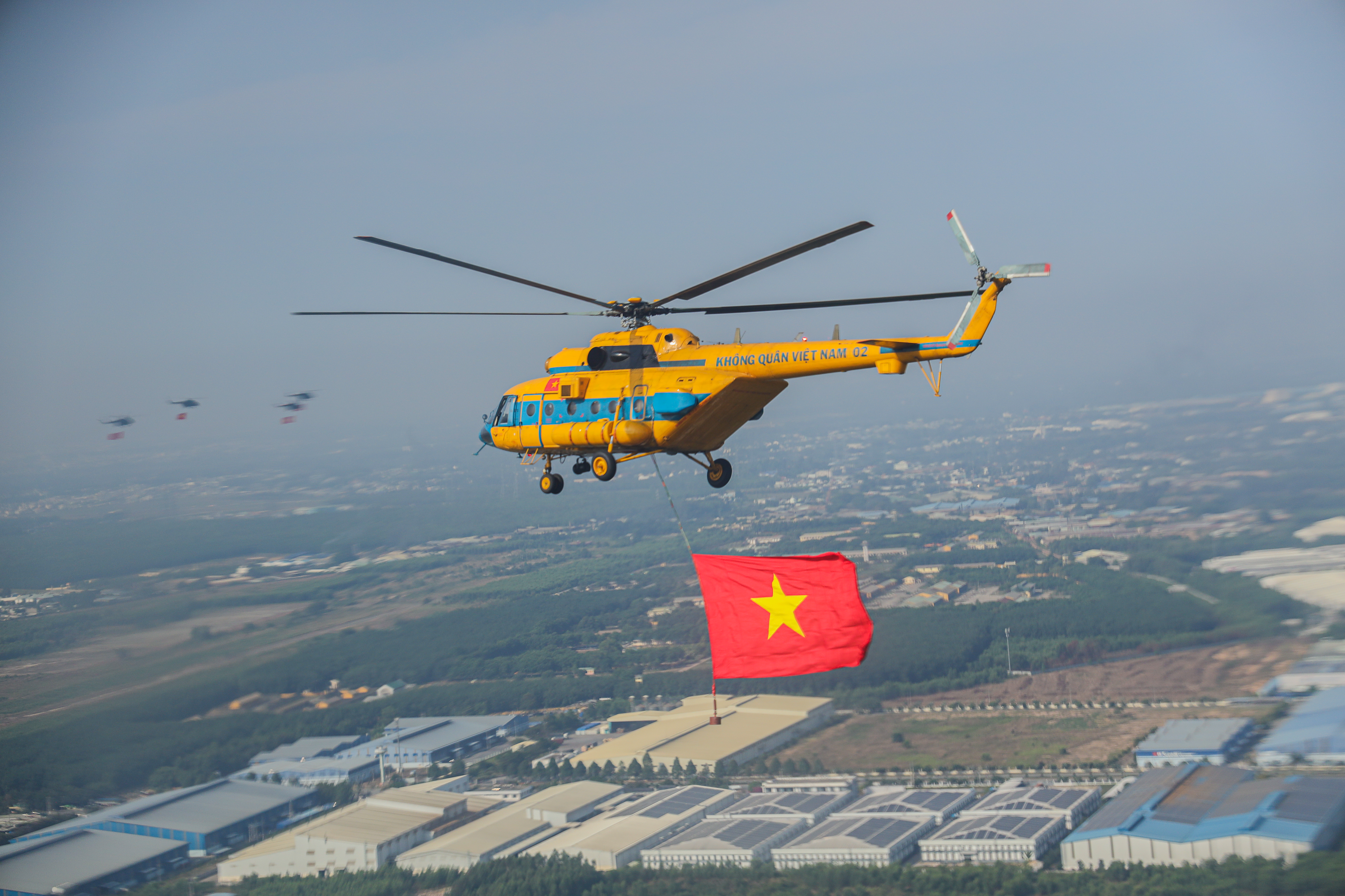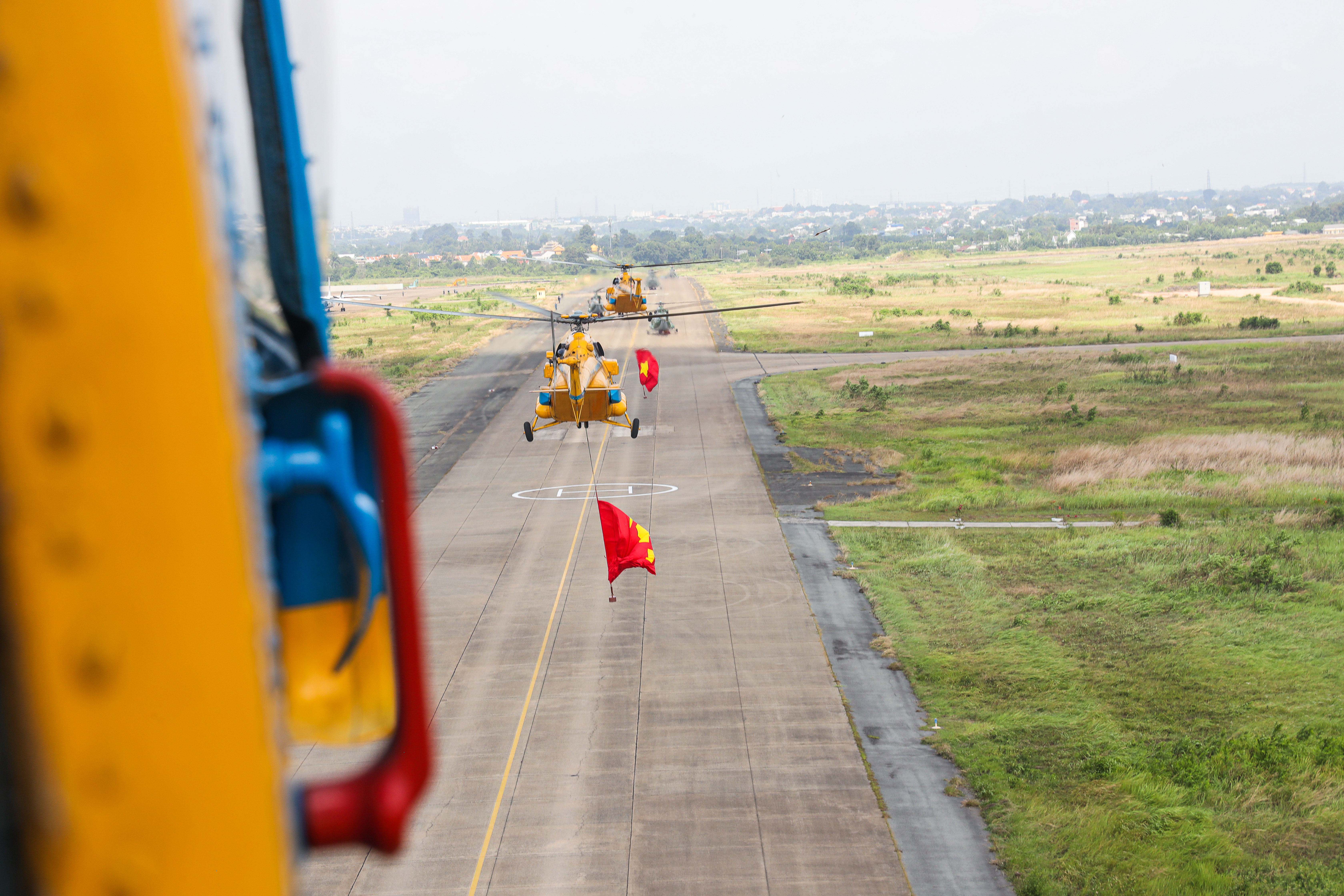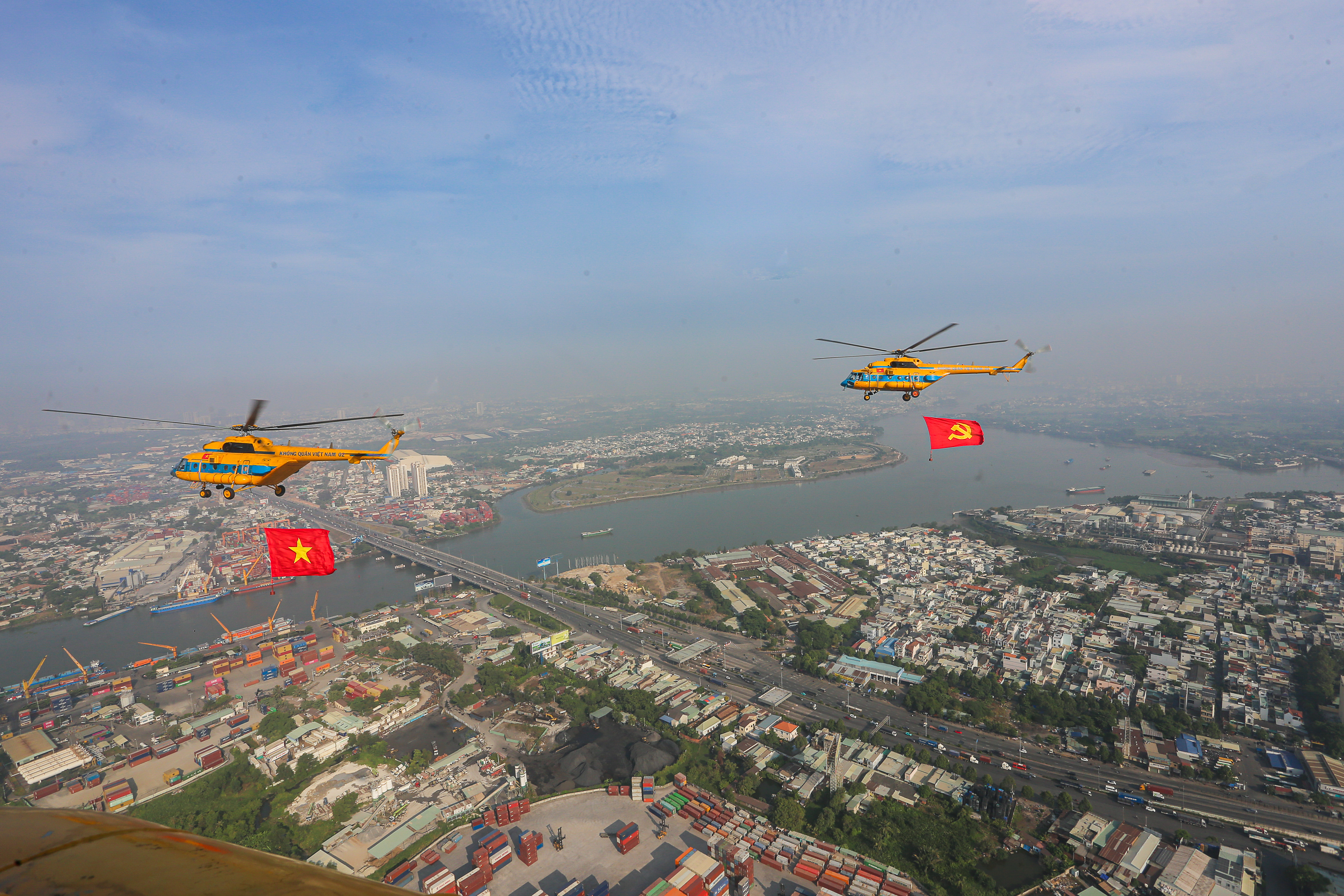 Theo kế hoạch, sau khi nhận lệnh cất cánh từ sân bay Biên Hòa, 10 trực thăng Mi 18, Mi 17 và Mi 171 sẽ bay theo đội hình 3 biên đội 3-4-3, kéo cờ Đảng, cờ Tổ quốc bay qua Dinh Độc Lập, dọc sông Sài Gòn…